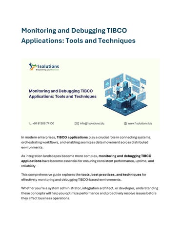 A practical guide to monitoring and debugging TIBCO applications - covering essential tools, techniques, and best practices to ensure peak performance, reliability, and scalability. Learn how to leverage TIBCO Hawk, TEA, and advanced debugging methods to optimise enterprise integrations and proactively resolve issues.
