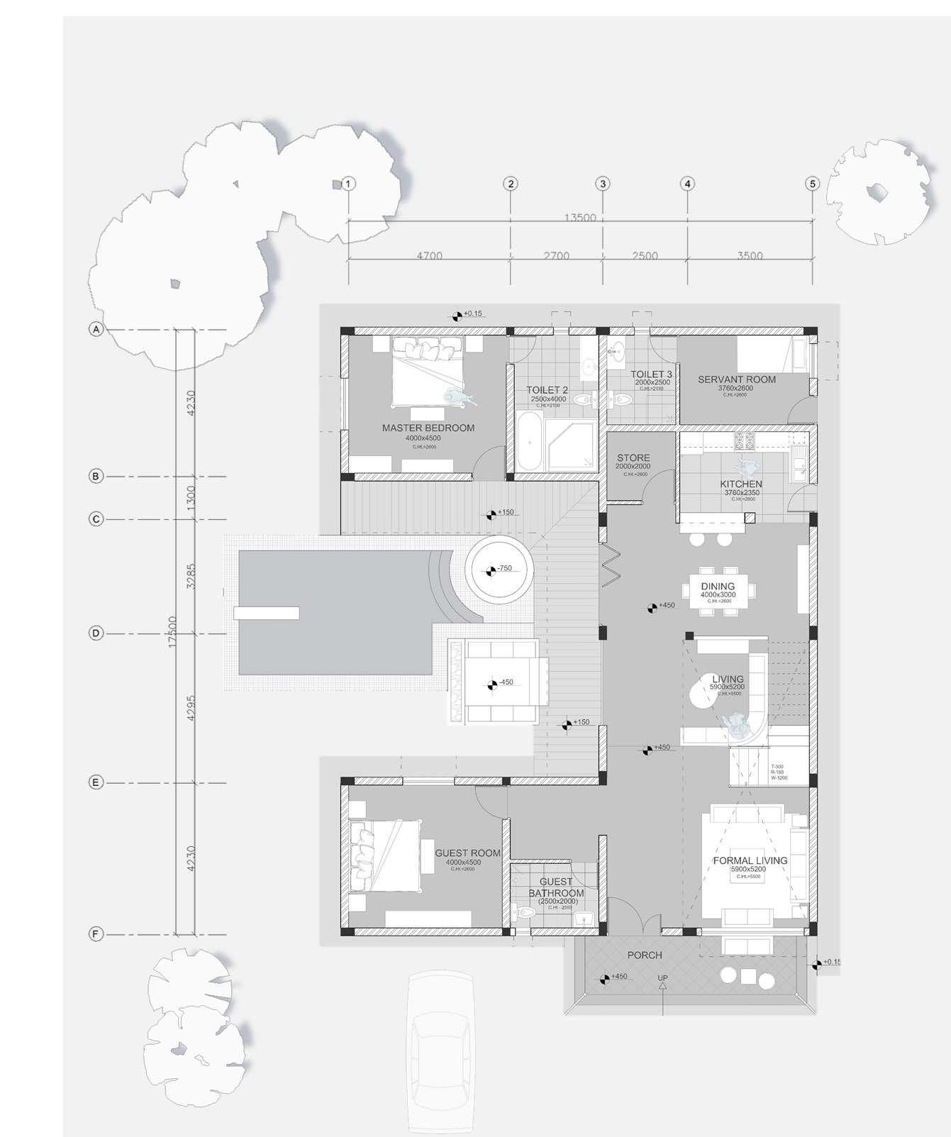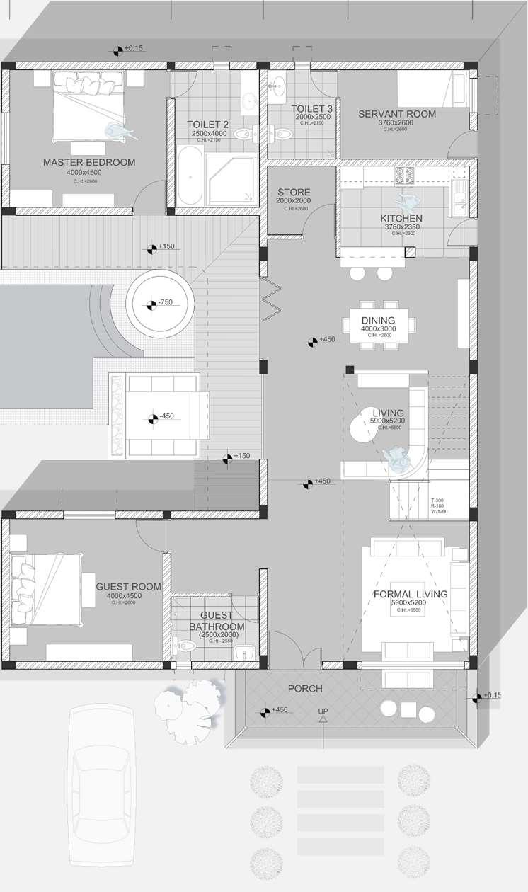 Thisarchitecturalprojectenvisionsa villanestledwithintheembraceofahilly region.Designedforbothgrand entertainingandintimatefamilymoments, thelayoutboaststwoluxuriousmaster bedrooms,adedicatedservantroom,anda spaciouskitchenseamlesslyflowingintoa diningarea.Adedicatedkid'sroomensures aplayfulhavenforyoungerresidents.Dual livingspacescatertobothsophisticated gatheringsandcasualrelaxation,the formallivingroomfeaturesandairy double-hightceiling,creatingasenseof spaciousness.Steppingoutdoors,a sparklingpoolbeckons,completewitha built-injacuzziforultimateindulgence. Tofurtherenhancetheconnectionwith nature,afireplaceanchorsaninviting outdoorsittingarea,creatinganidyllic settingforstarlitevenings undertheopensky.