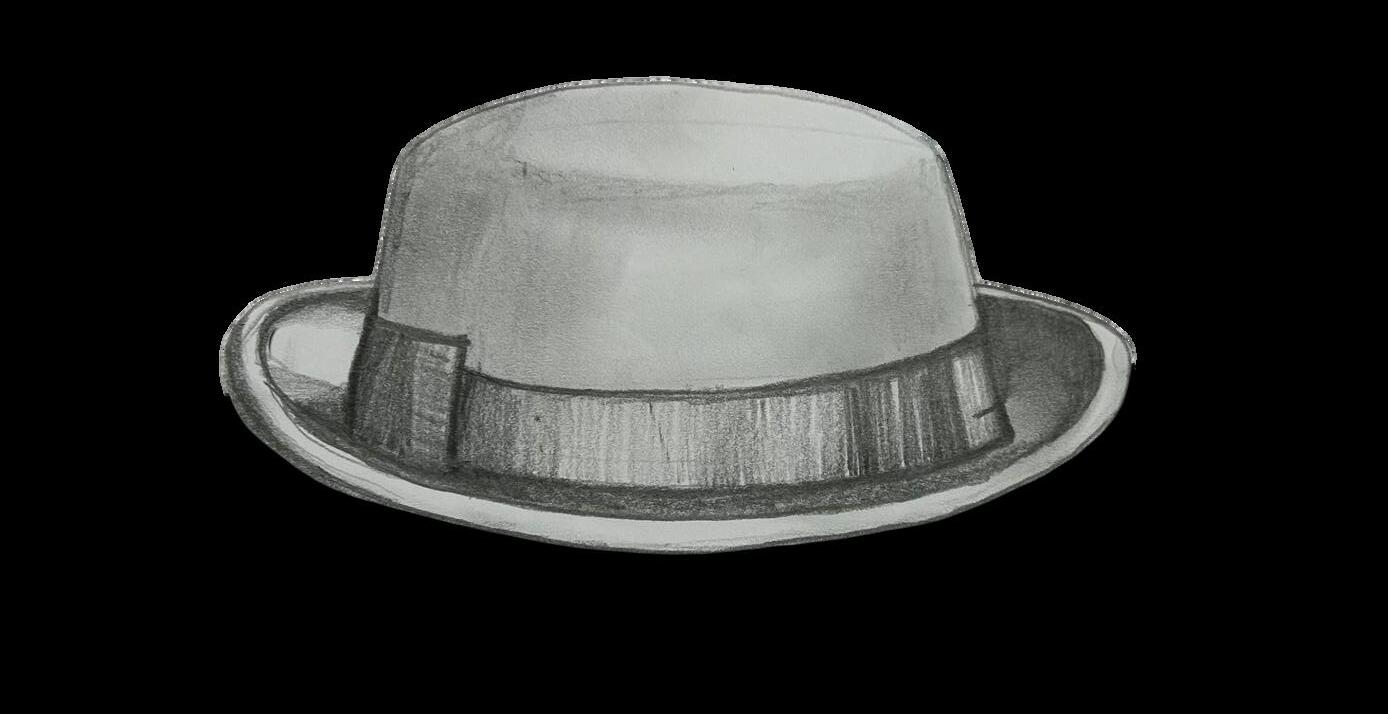 The sketch represents a classic hat, possibly a fedora or bowler style, featuring a structured crown and a curved brim. It is likely made from felt, wool, straw, or synthetic fabric, depending on its intended use. The hat's construction involves blocking and shaping the material over a mold, ensuring a structured form. The brim is reinforced to maintain its shape, possibly with a wire or stiff fabric lining. A decorative band wraps around the base of the crown, stitched or glued for secure attachment. The inner lining is often added for comfort and durability, using soft fabric or sweat-absorbent materials. The joinery includes stitching, pressing, and adhesive bonding, ensuring durability while maintaining a stylish appearance.