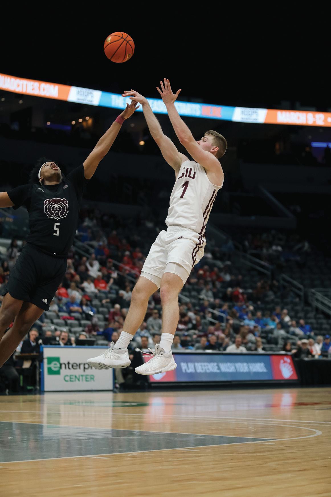 Lance Jones led the team in scoring on Saturday with 18 points. He opened the night with two threepointers to spark a 9-0 run for the Salukis to begin the game, and featured heavily in a 13-2 Saluki run to start the second half.