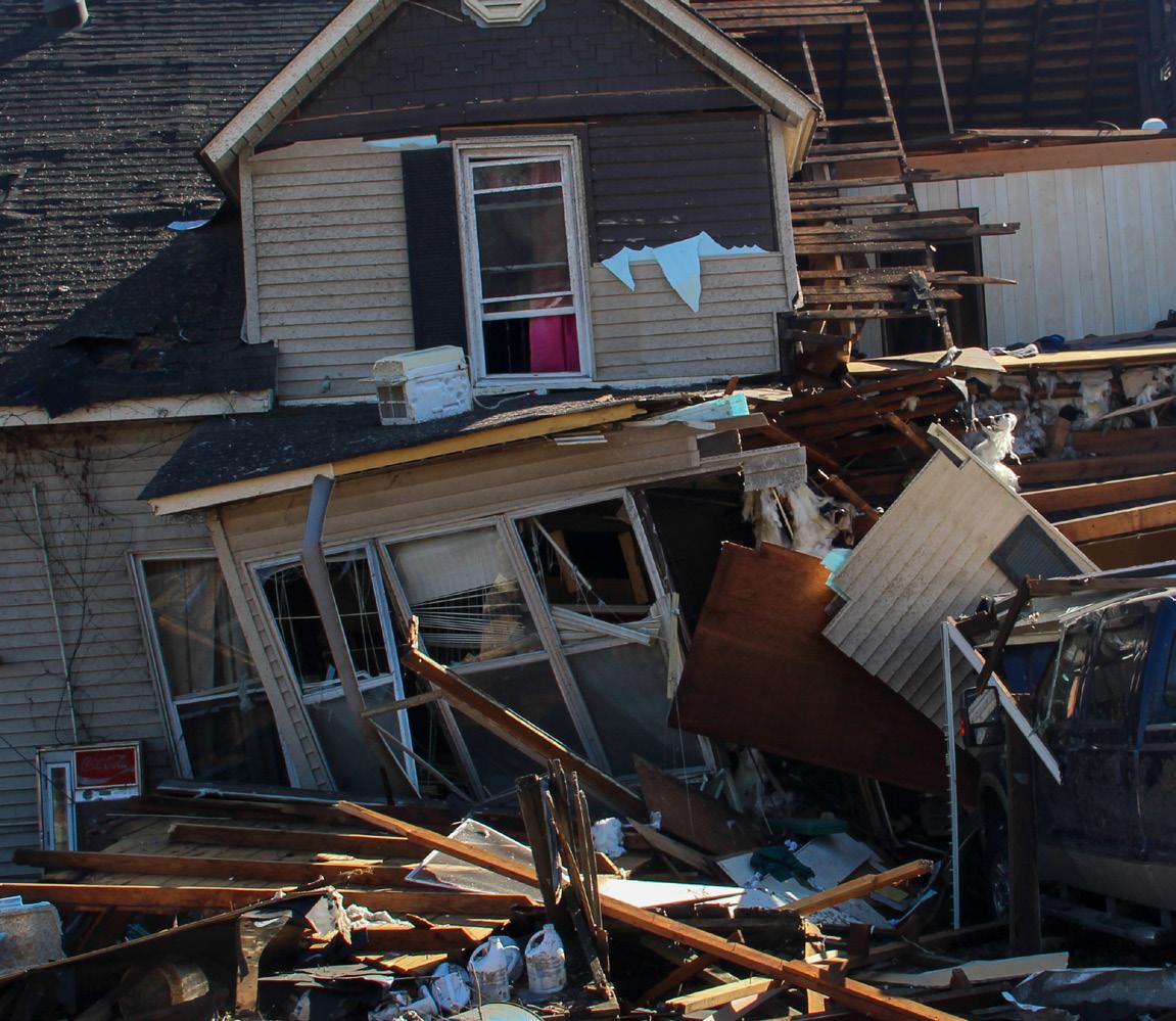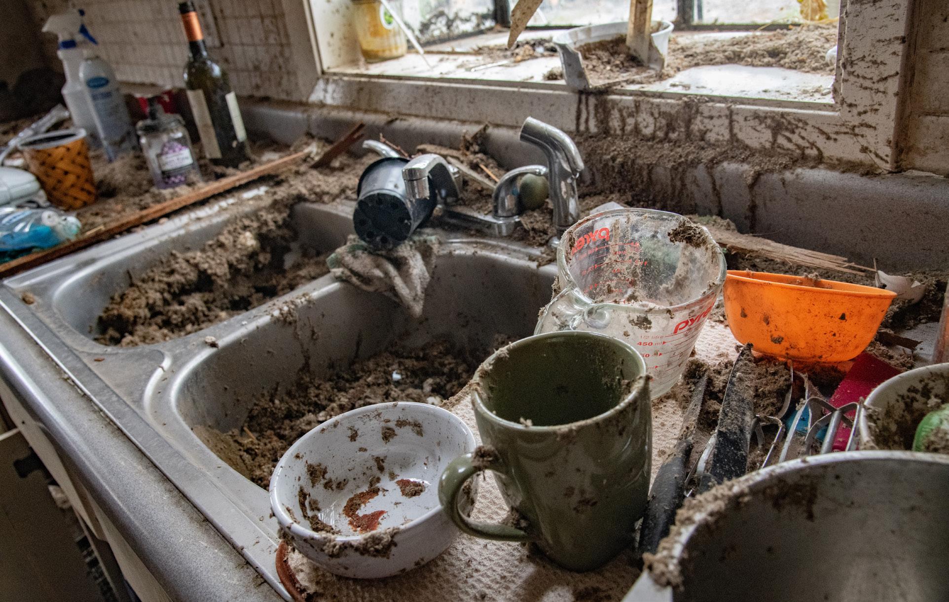 He went to his mother, who was still tucked away in the bathroom closet, which was nearly untouched by the storm, and prepared her to see the wreckage of the house. Mud and glass were littered across the rain-slick floors, chunks of the ceiling were scattered around the kitchen, and her belongings were thrown about the house at random, but the three of them were safe.