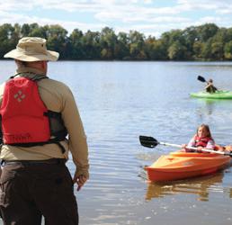 Ranger Bob Dietrich watches as two children kayak on Crab Orchard Lake at the 75th anniversary celebration of Crab Orchard Oct. 8, 2022 at Crab Orchard National Wildlife Refuge in Marion, Ill. Naia McPherson | nmcpherson@dailyegyptian.com