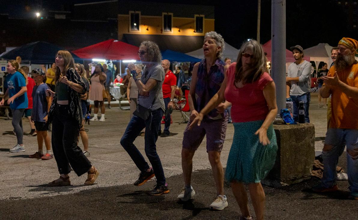 Audience members dance at Brass Queens performance at the Off the Rails concert Oct. 3, 2025 in Carbondale, Illinois. Emily Brinkman | erb_photo_