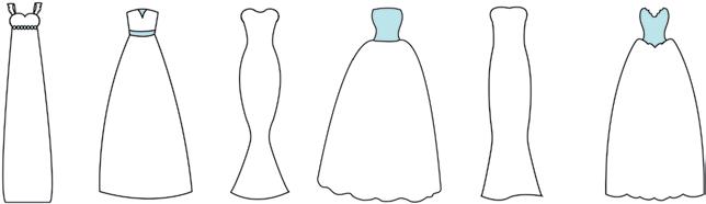 Select your wedding gown, shoes and accessories, as well as bridesmaids’ dresses, tuxes, flower girl dresses