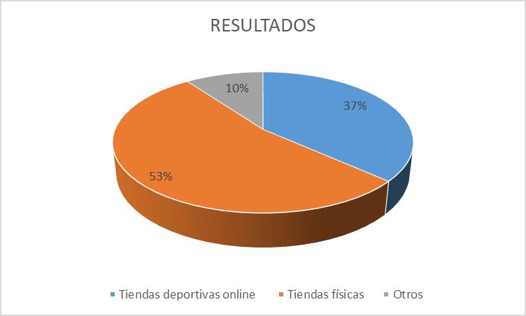 Del total de las personas encuestadas el 53% prefiere a la hora de adquirir sus Implementos Deportivos en tiendas online, el 37% prefiere a la hora de adquirir Implementos Deportivos en tiendas físicas, el 10% prefiere a la hora de adquirir Implementos Deportivos otros sitios.