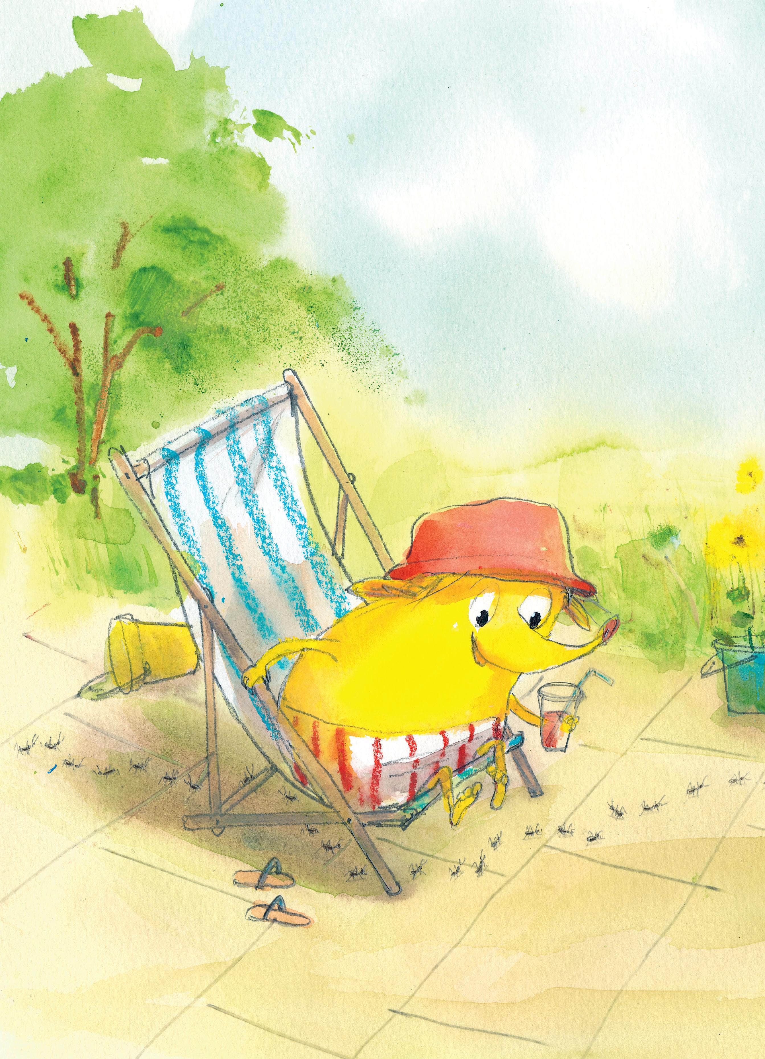 Sommerdage. Ømse holder fri © Jeppe Madsen (forfatter) og Charlotte Pardi (illustrator) og Gutkind Forlag A/S, København 2024 1. udgave, 1. oplag, 2024 Grafisk tilrettelæggelse: Maria Lundén Sat med Colby og trykt hos Livonia Print, Riga ISBN: 978-87-434-0804-8