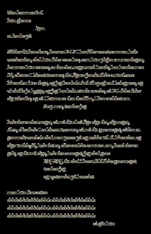 En anden inspiration kommer fra folkevisernes fortællemåde, som fortæller en historie med store, voldsomme følelser i en koncentreret digtform, og hvor det er nogle få konkrete detaljer, der viser følelserne, og som fortæller de væsentlige dele af historien Først arbejdede jeg med at fortælle historien i enkelte digte med en scene pr. digt, men jeg fandt ud af, at det begrænsede historien, og da jeg satte formen fri, opstod der nye måder at bruge hele papirsiden: Linjeskift, glidende, hoppende og forsvindende bogstaver, tegnsætning, forskellig skriftstørrelse, tekstelementer skrevet grafisk, fx som figurer og i wordart. Det er ikke en letlæsningsbog, men jeg har ofte tænkt, at skrivemåden måske kan give større læselyst, fordi der er mange tekstindgange, og den bliver lettere at gå om bord i, end en bog der består af ren tekst, der kan opfattes som en tekstmur