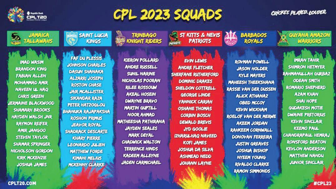 WEST INDIES – Shai Hope (captain), Rovman Powell, Shamarh Brooks, Yannic Cariah, Keacy Carty, Roston Chase, Jason Holder, Akeal Hosein, Alzarri Joseph, Brandon King, Kyle Mayers, Gudakesh Motie, Keemo Paul, Nicholas Pooran, Romario Shepherd