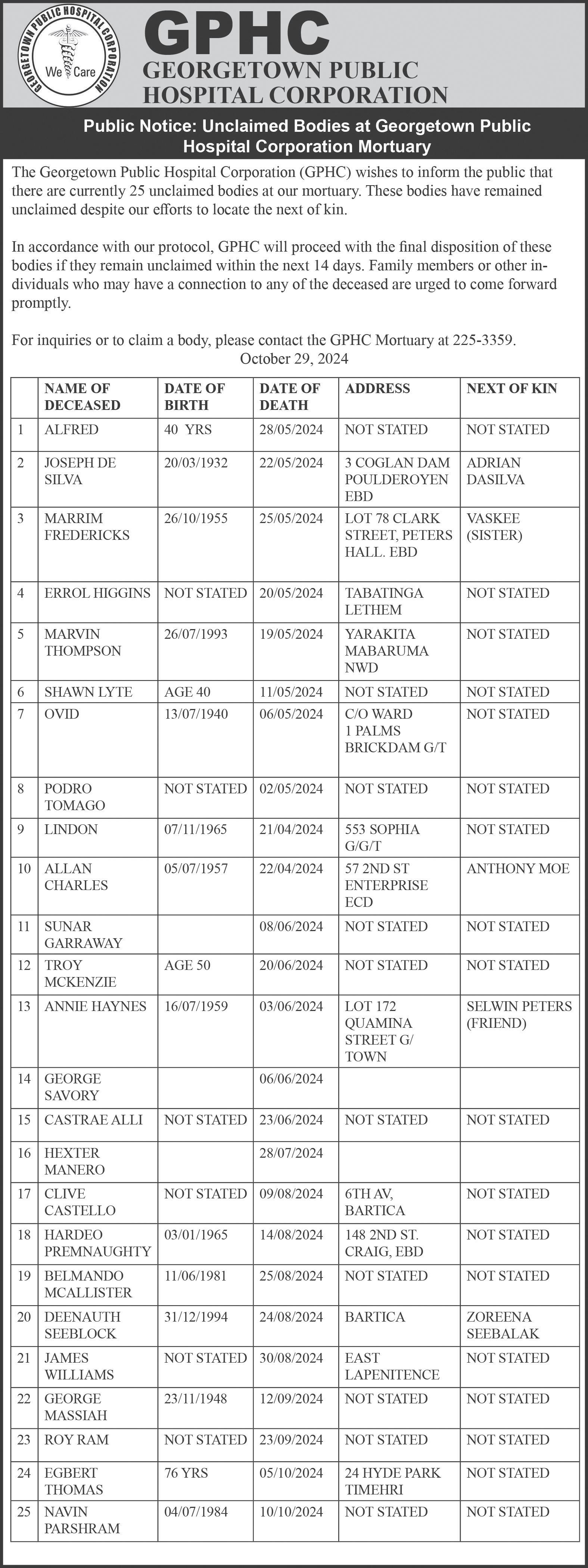 However, with Daly’s health issues persisting that day, acting Chief Magistrate, Faith Mc Gusty, updated the court that the trial would now be further adjourned to October 31, 2024, for reports.