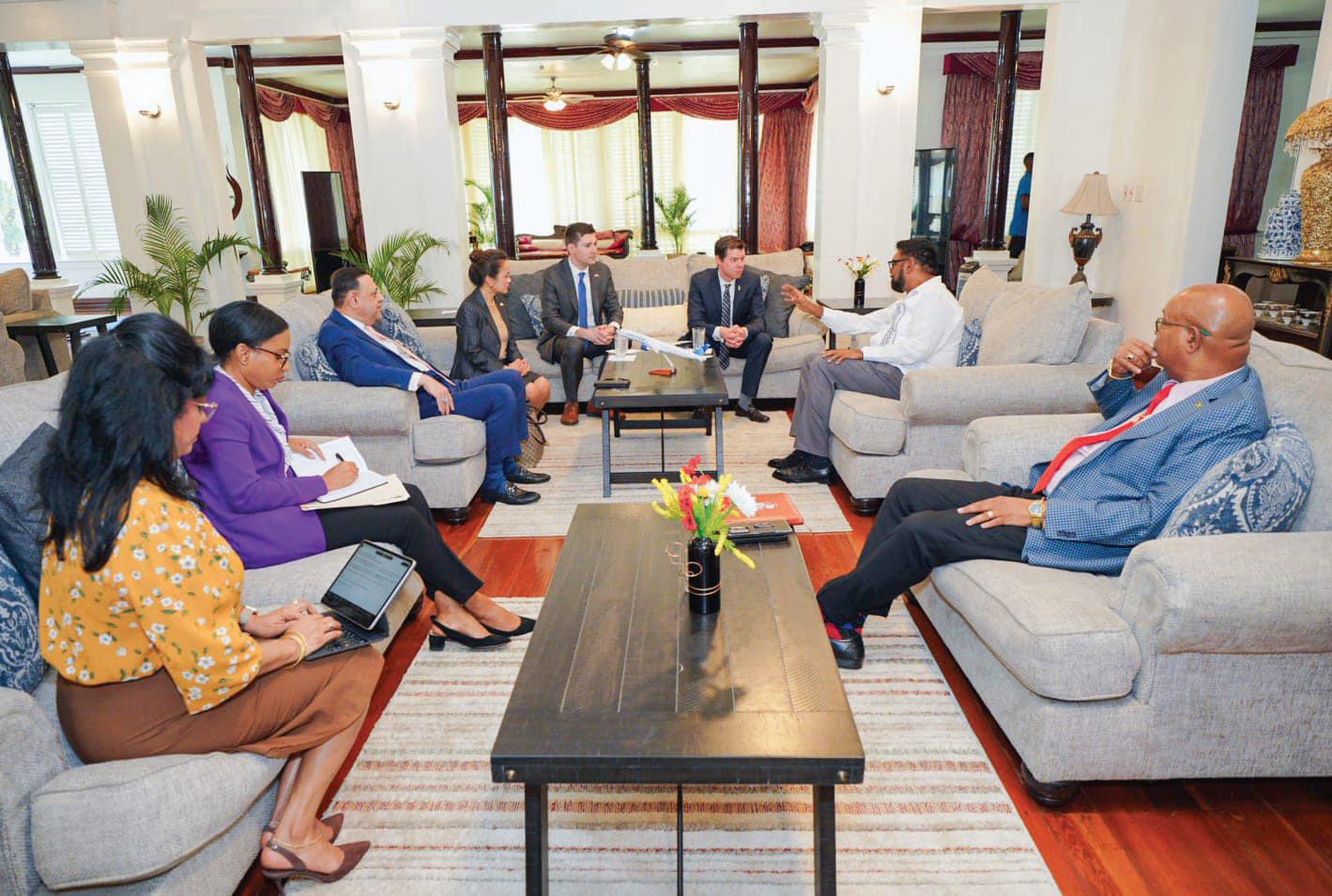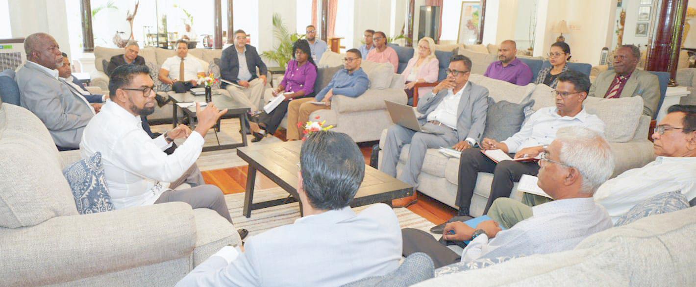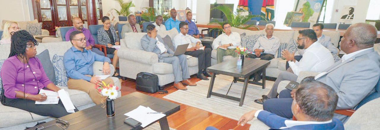President Dr. Irfaan Ali engaging the Board of Directors and management of GPL, the Power Producers and Distributors Incorporated (PPDI) and Wartsila, on Tuesday (President Ali photos)