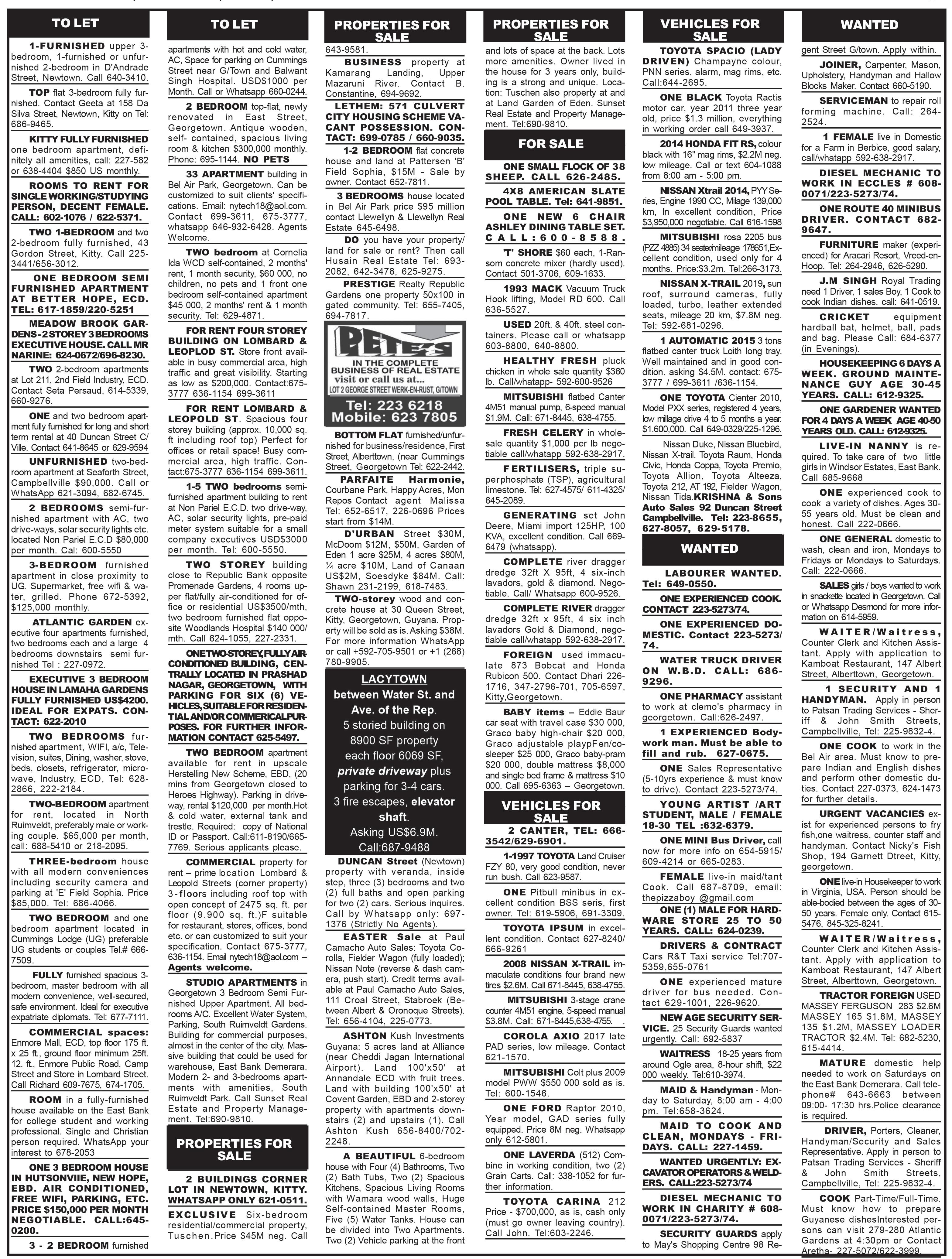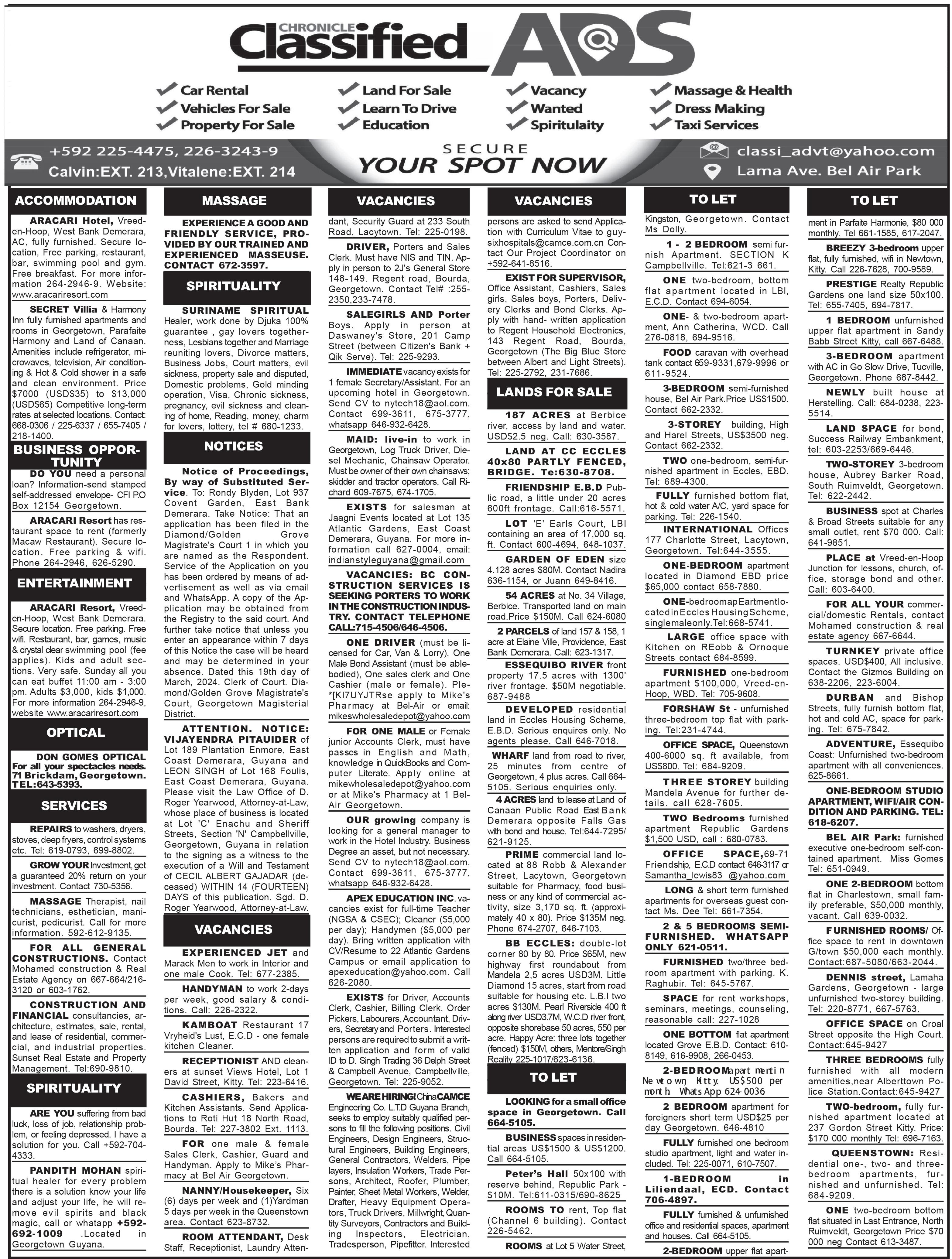 36 GUYANA CHRONICLE, Wednesday, April 3, 2024 Printed and Published by Guyana National Newspapers Limited, Lama Avenue, Bel Air Park, Georgetown. Telephone 226-3243-9 (General); Editorial: 227-5204, 227-5216. Fax:227-5208 | WEDNESDAY, APRIL 3, 2024