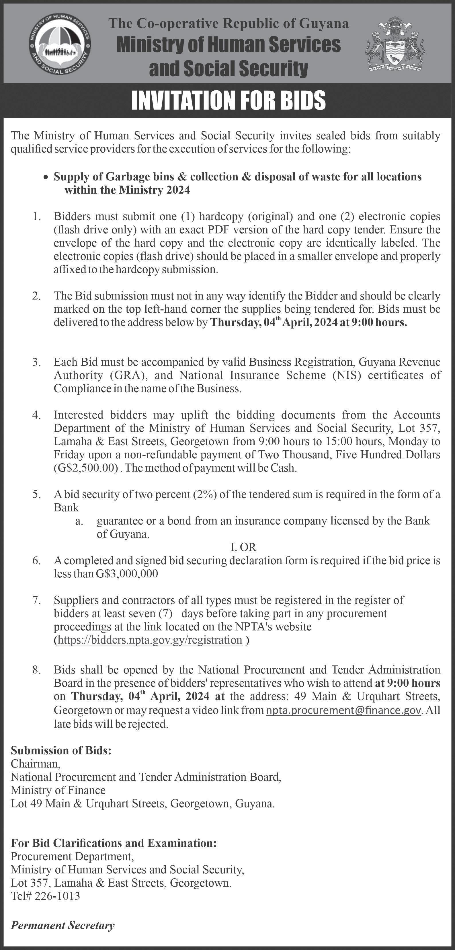 3rd April, 2024 WEDNESDAY PRICE $100 VAT INCLUSIVE '
