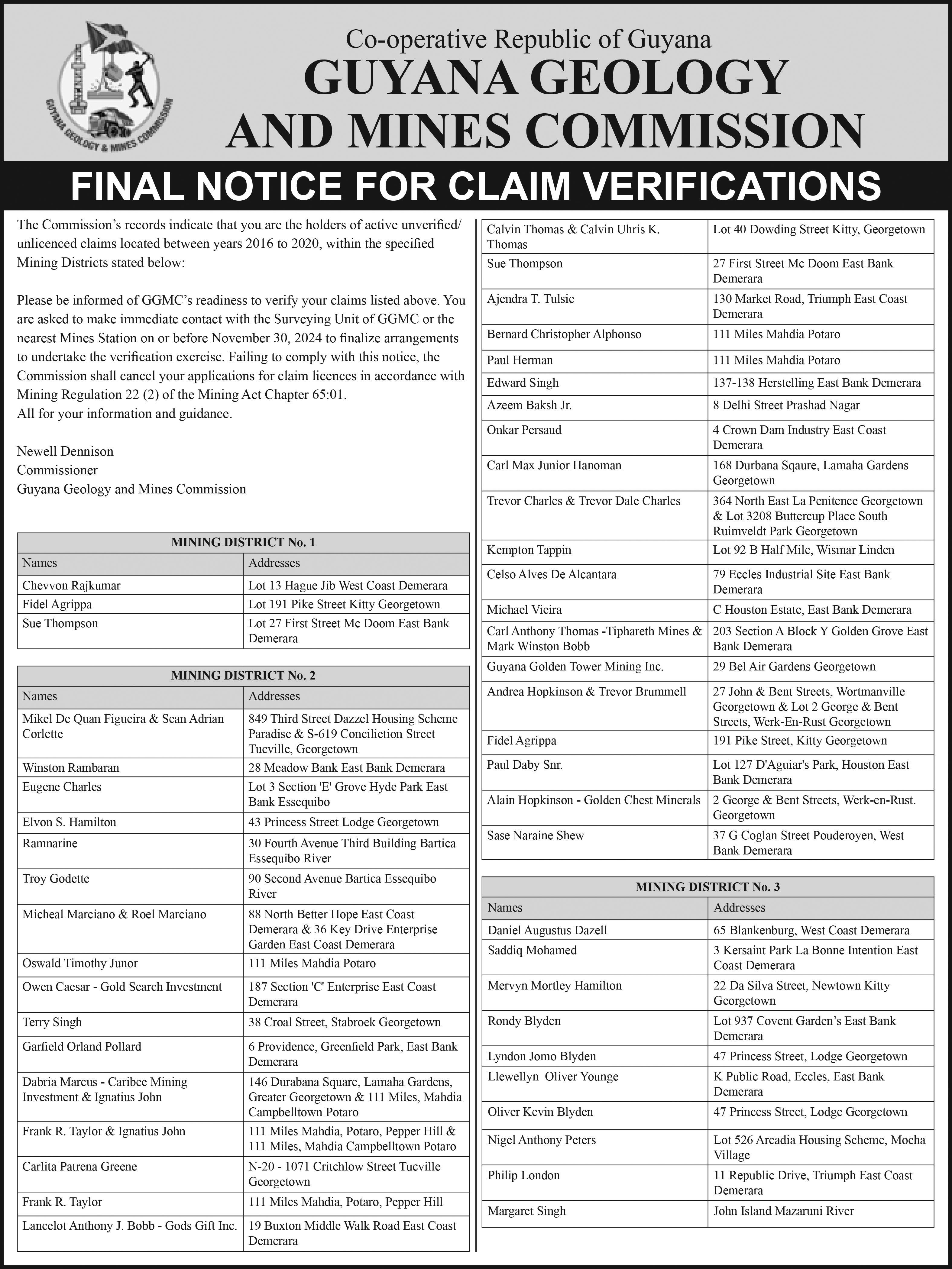 The university in its statement included a brief synopsis of each awardee and advised that persons wishing to attend or view the presentations are encouraged to do so at https://www.facebook.com/uniofguyana and UG Broadcasting Service at https://broadcasting.uog. edu.gy/.