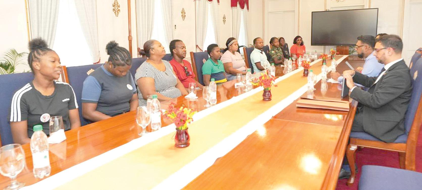President, Dr Irfaan Ali on Monday met with the families of the victims of the tragic bombing that occurred on 26 October at the Mobil Gas Station on Regent Street (Office of the President photo)