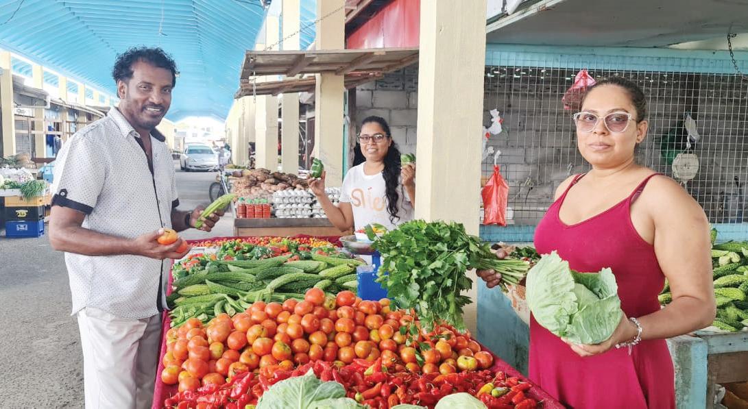 R3PSInc Head Halim Khan with vendors and their fresh supplies at the Parika Market on Saturday