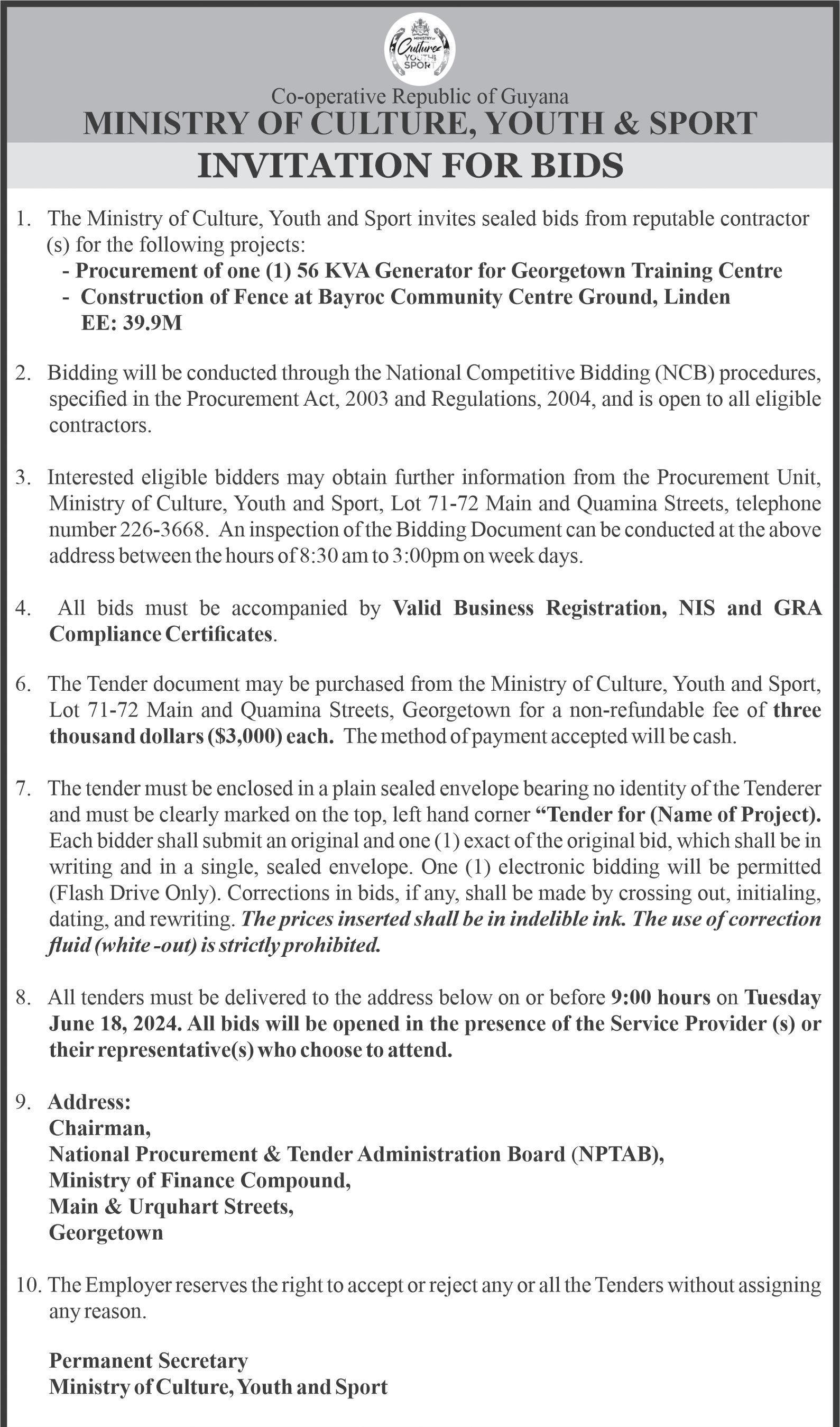 36 GUYANA CHRONICLE, Wednesday, June 5, 2024 Printed and Published by Guyana National Newspapers Limited, Lama Avenue, Bel Air Park, Georgetown. Telephone 226-3243-9 (General); Editorial: 227-5204, 227-5216. Fax:227-5208 | WEDNESDAY, JUNE 5, 2024 SEE PAGE 34 SEE PAGE 35 SEE PAGE 33