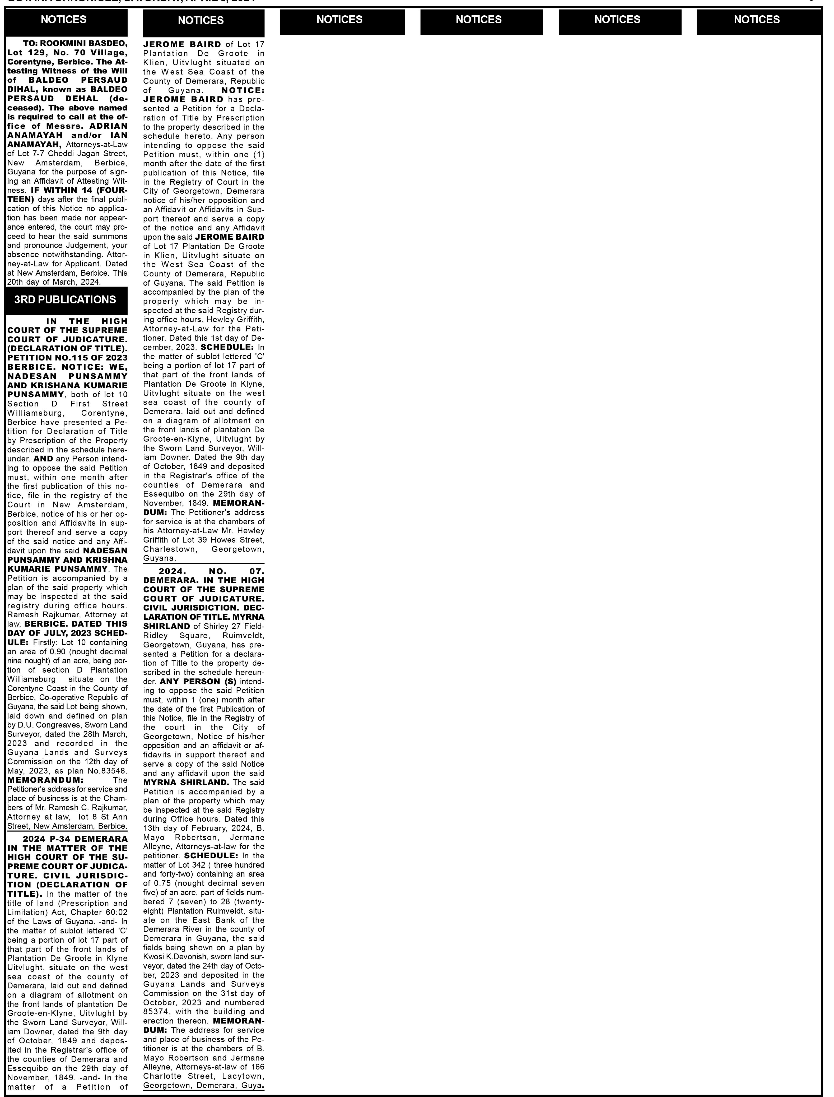 Printed and Published by Guyana National Newspapers Limited, Lama Avenue, Bel Air Park, Georgetown. Telephone 226-3243-9 (General); Editorial: 227-5204, 227-5216. Fax:227-5208 SATURDAY, APRIL 6, 2024
