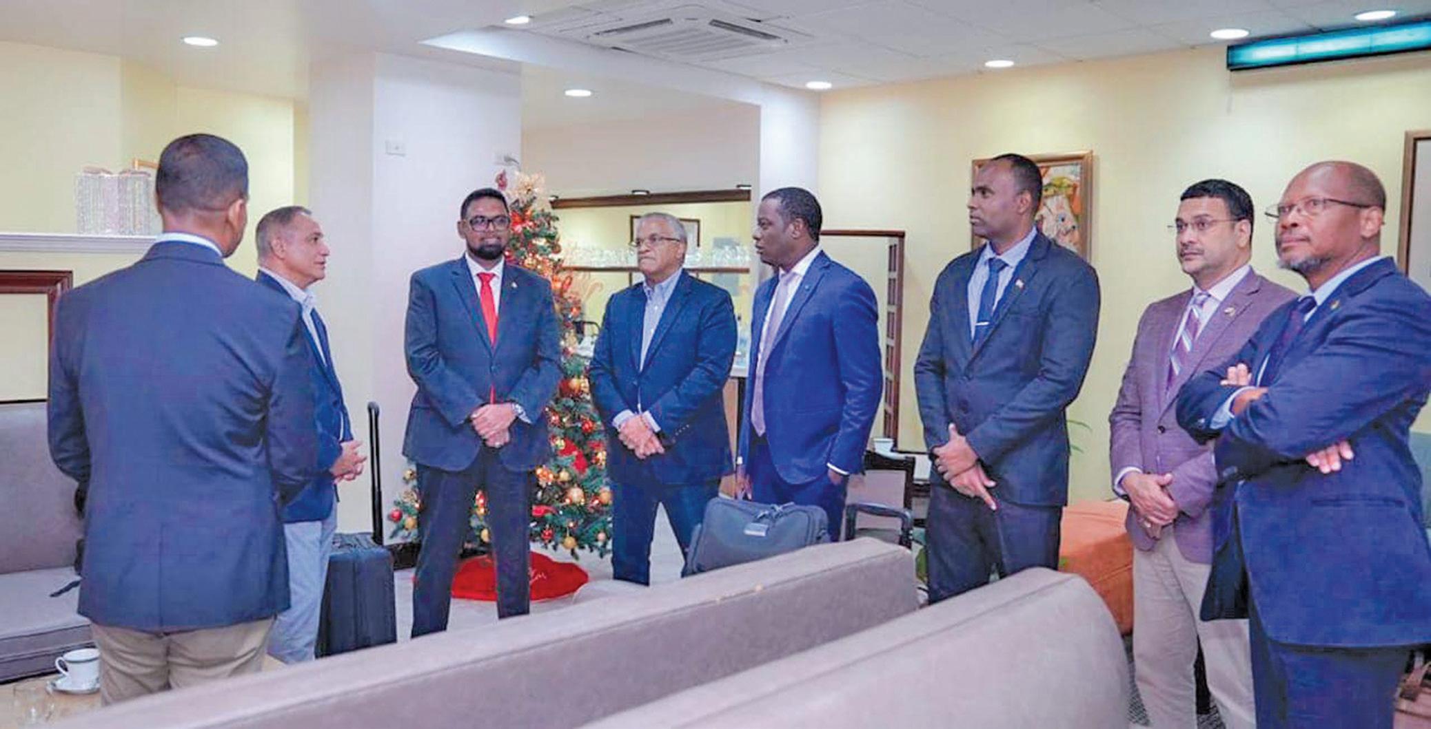 Minister of Foreign Affairs and International Cooperation Hugh Todd; Guyana’s Ambassador to CARICOM George Tal bot; Director of National Intelligence and Security Administration Col. Omar Khan; Head of the Cus toms Anti-Narcotic Unit, James Singh; and Crime Chief Wendell Blanhum are also part of the dele gation in Barbados.