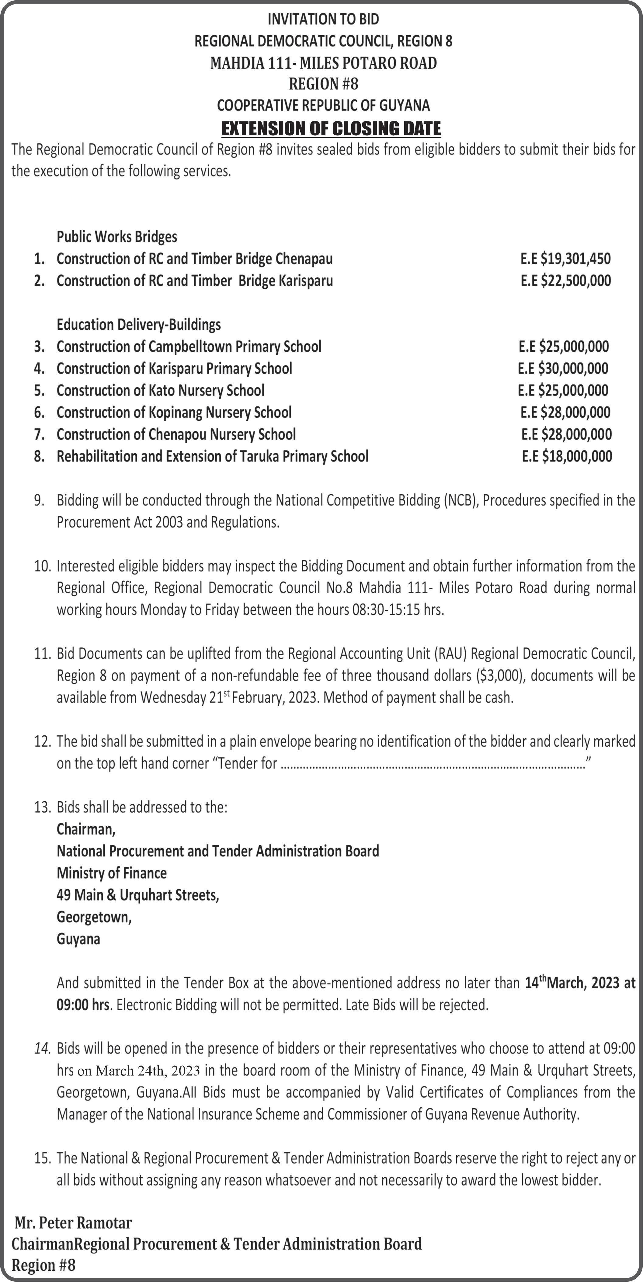 SOME $254.5 million in contracts were signed between several contractors and the Region Nine Regional Democratic Council (RDC) for capital and current projects to advance infrastructural development and transformation in that region.