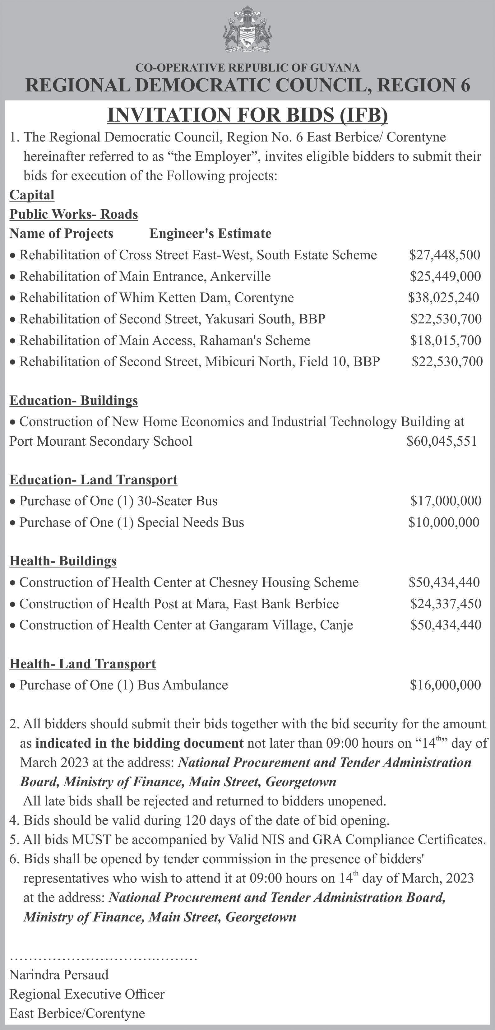 THE Guyana Cricket Board (GCB) Senior Male Inter-County four-day tournament will continue on March 9-12, 2023 with the second round fixture between Berbice and Essequibo to be played at Enmore while the Demerara and GCB Select XI match will start on March 11-14, 2023 at the GCC, Bourda.