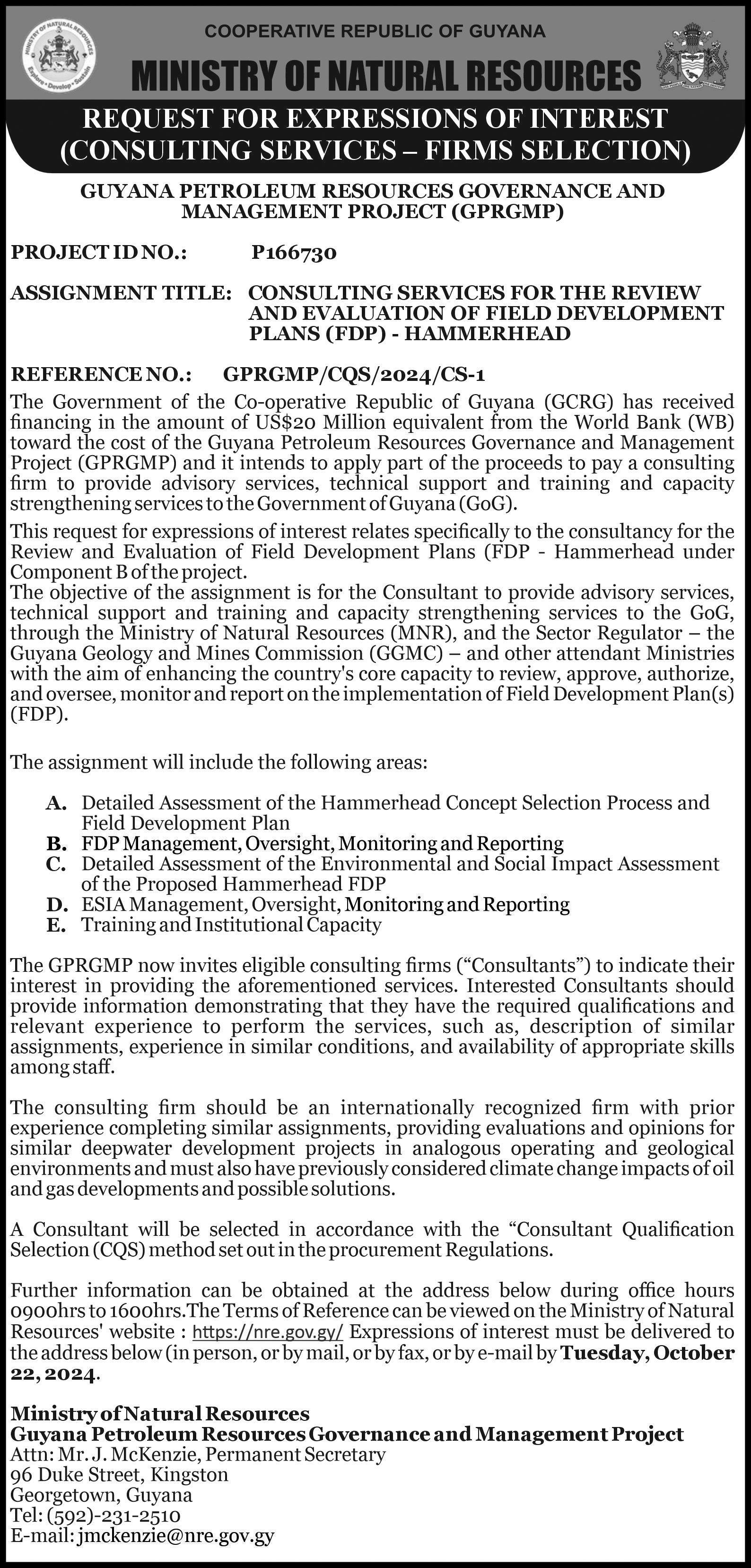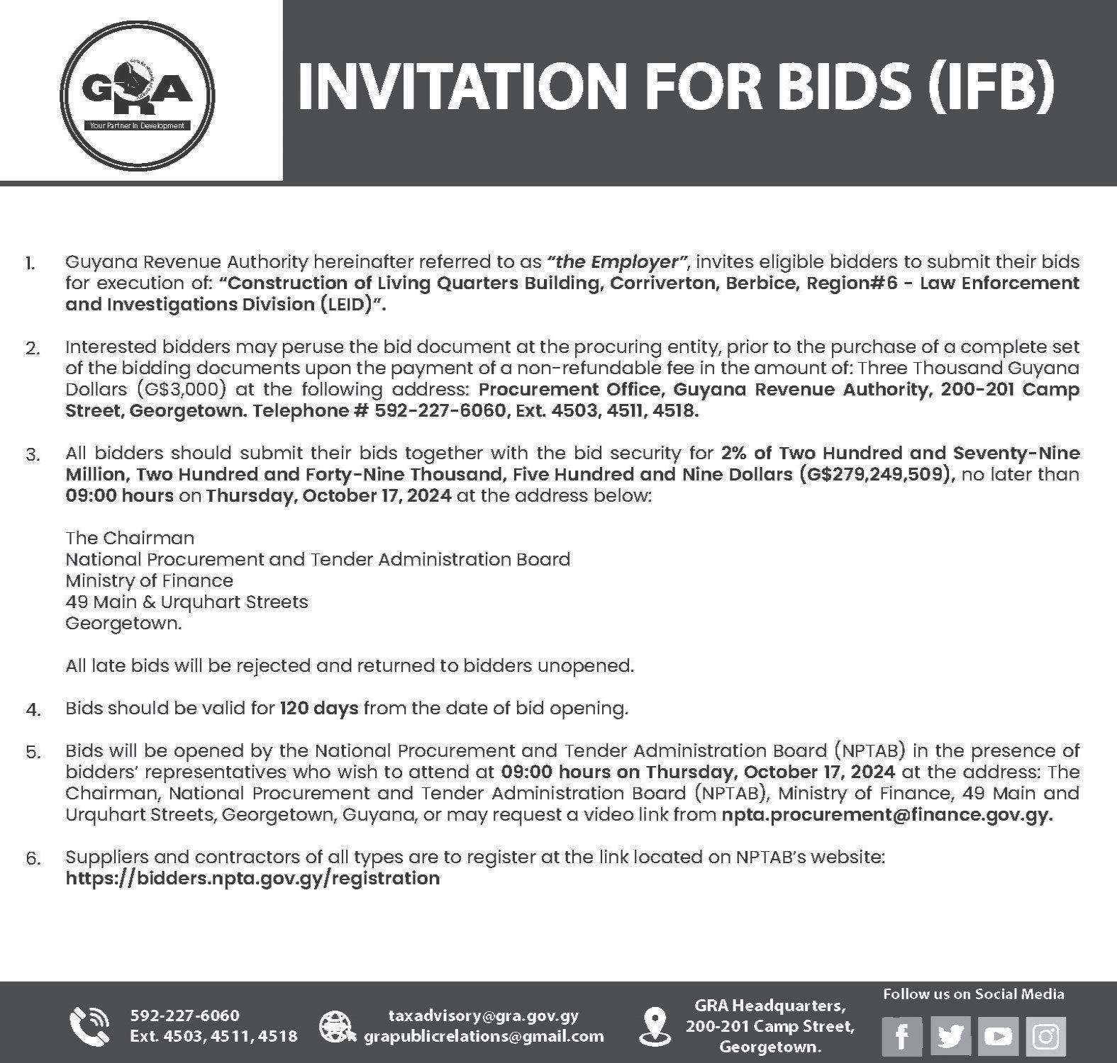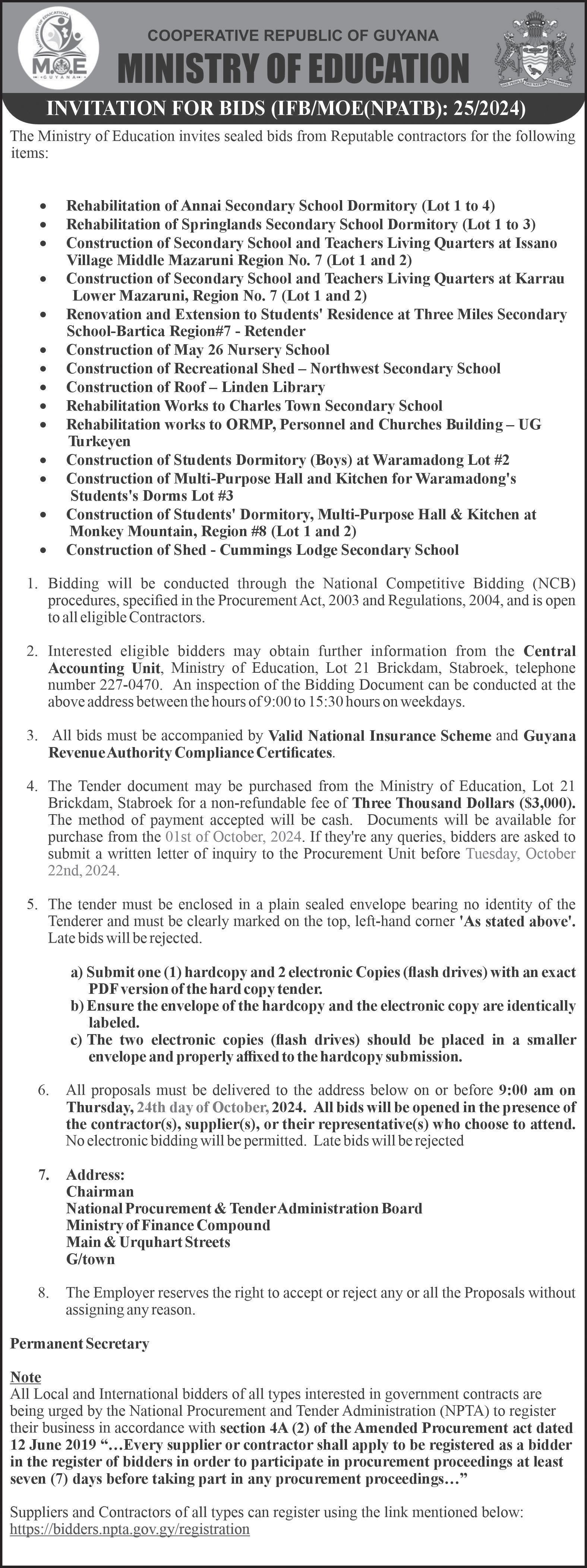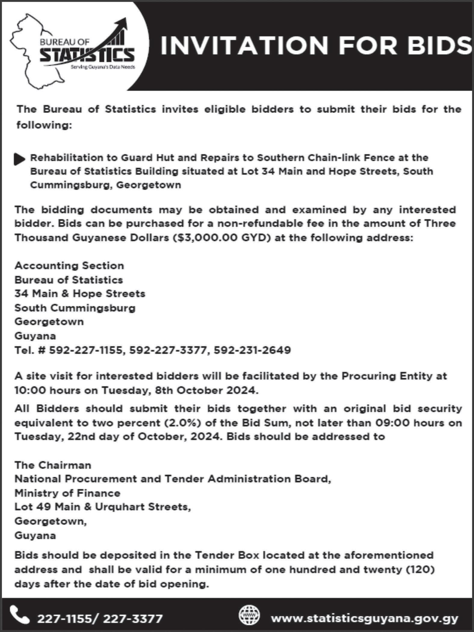 (Wednesday October 09, 2024) CUMMINGS ELECTRICAL COMPANY LTD -83 Garnett Street, Georgetown (Tel: 225-6158)