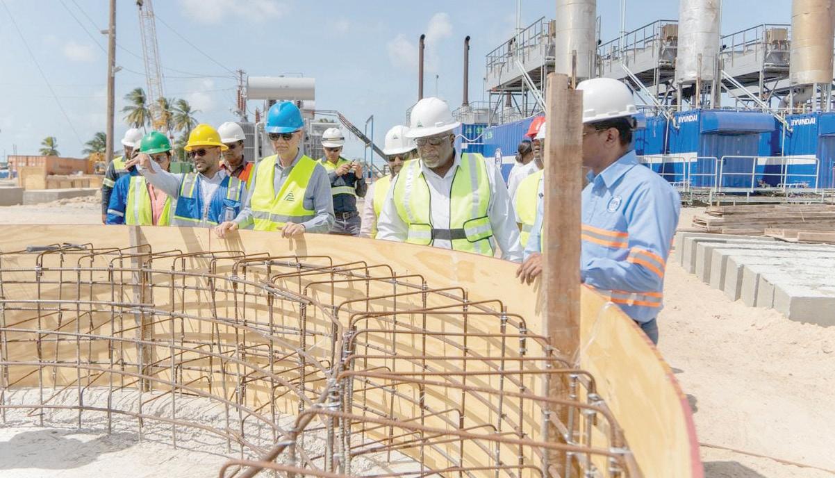 Prime Minister, Brigadier (Ret’d) Mark Phillips, inspected the progress of the installation of 17 generators and six step-up transformers at the Guyana Power and Light’s (GPL) sub-station at Columbia, East Coast Demerara, on Monday (Office of the Prime Minister photos)