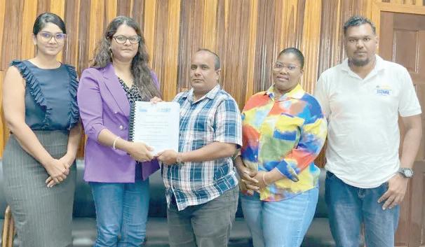 Present at the signing were Karen Roopchand, Project Manager, BNTF; Ajay Bissessar, Project Engineer, BNTF; Beverley Bunbury, Community Liaison Officer, BNTF; Amanda Persaud, Director, and contractor of Faldhari Singh & Son Contracting Services