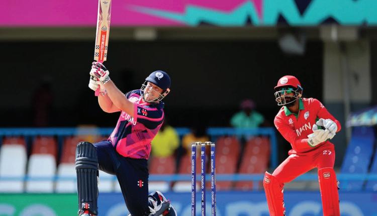 SCOTLAND raced to a comprehensive seven-wicket victory over Oman at the T20 World Cup to go top of Group B.