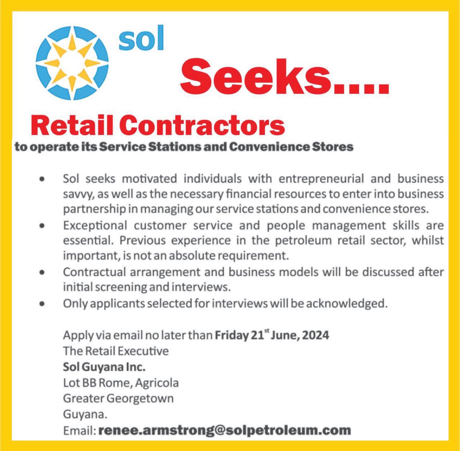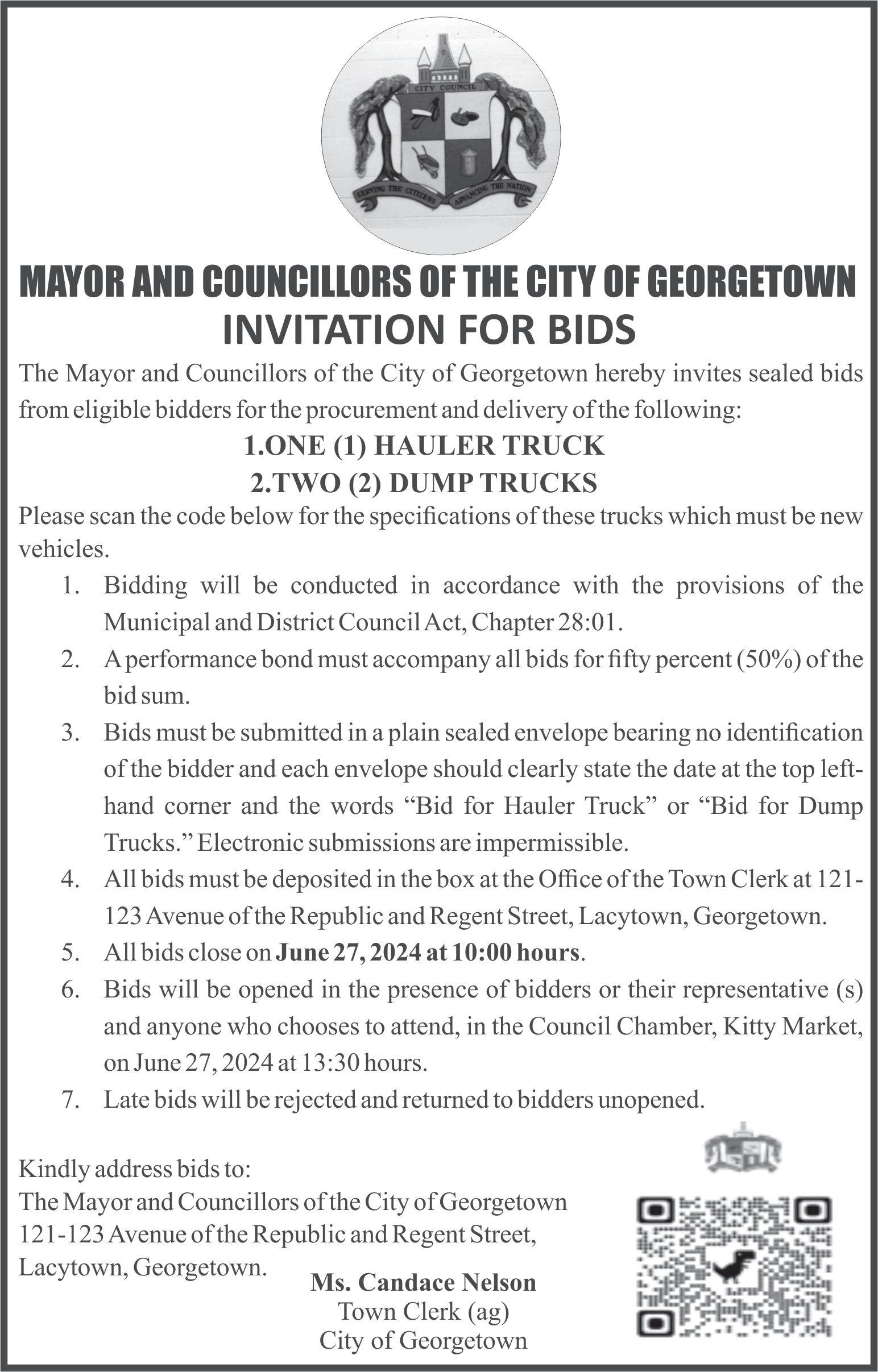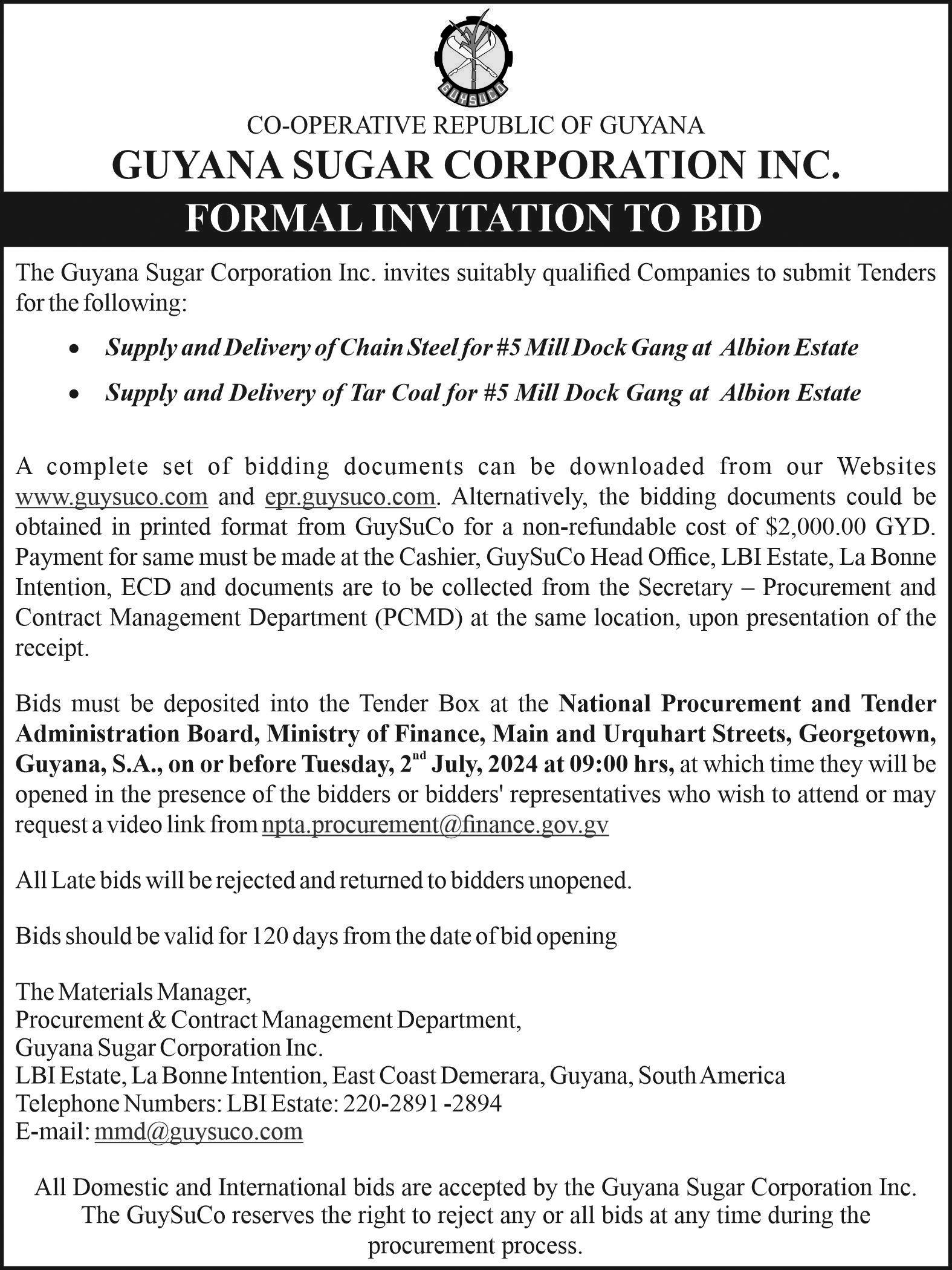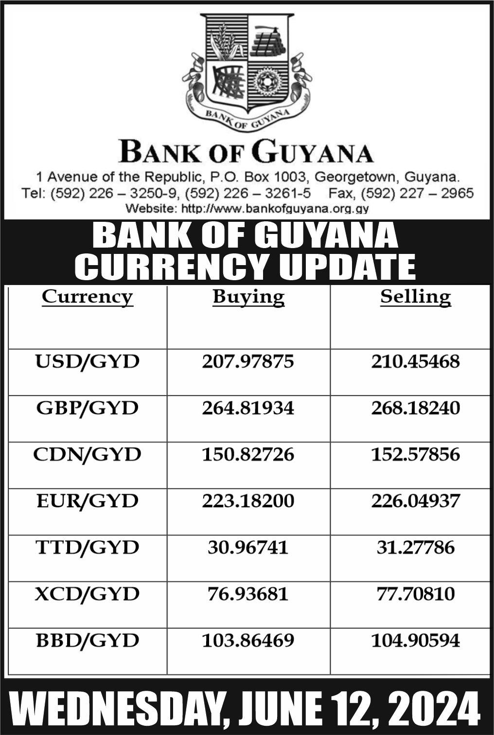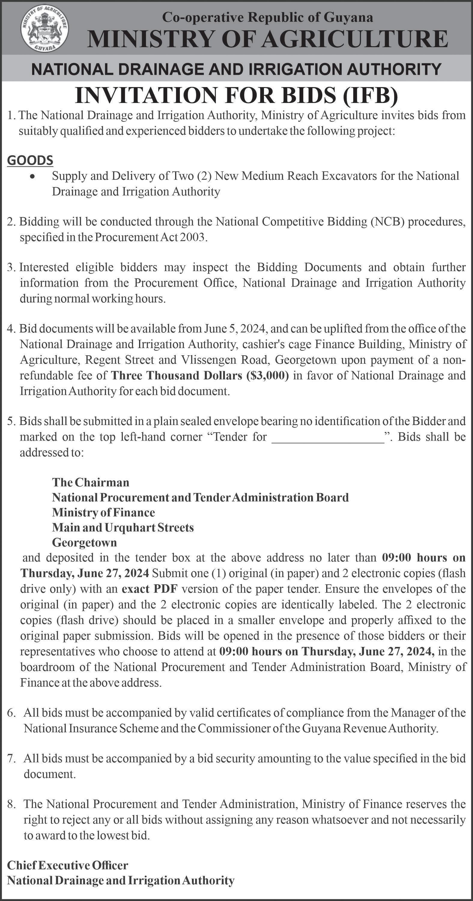 (Wednesday June 12, 2024) CUMMINGS ELECTRICAL COMPANY LTD83 Garnett Street, Georgetown (Tel: 225-6158)