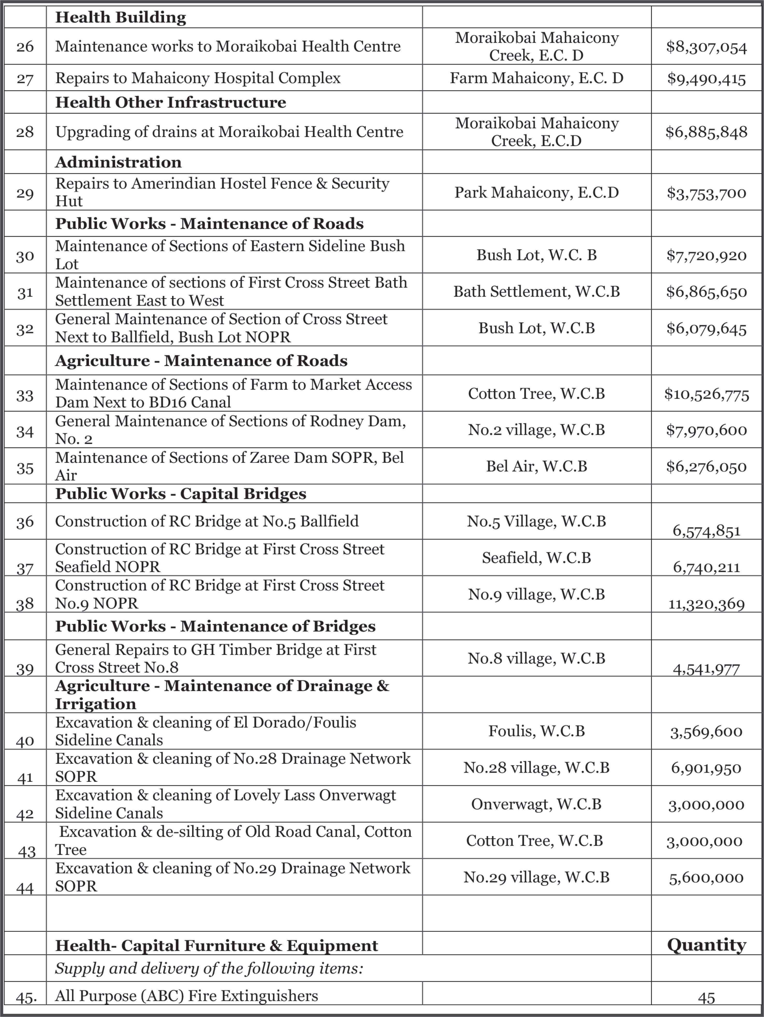Topping the list of new hospitals is the construction of a new and state-of-the-art Paediatric and Maternal Care Hospital in Ogle, East Coast Demerara at a cost of some $4.12 billion or 57 million US dollars.