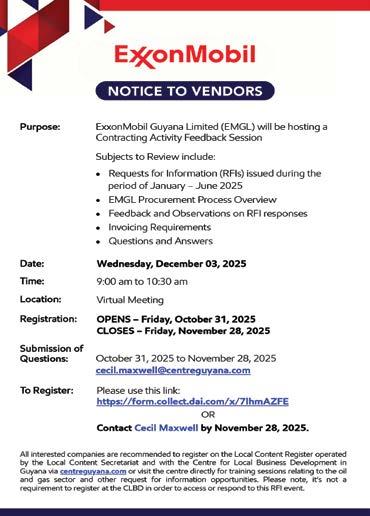 Bharrat described the arrangement as “a winwin for Guyana and our partners,” adding that it reflects the government’s transparent, sustainable,