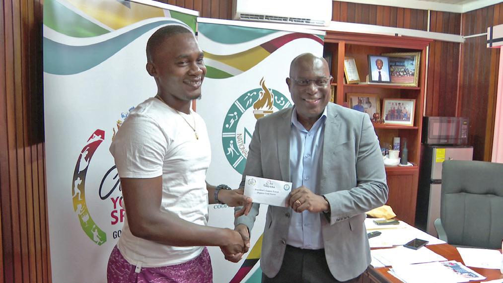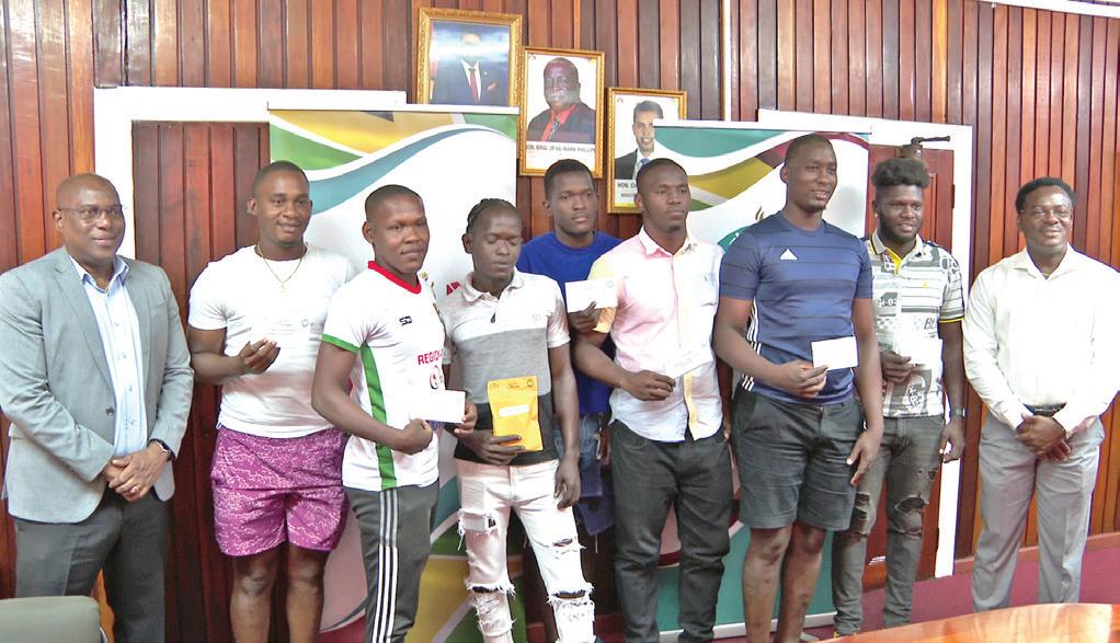 INAUGURAL winners of the One Guyana President Cup 2-day Futsal Championship North East on Monday collected their prize monies at the office of the Director of Sport at the National Sport Commission (NSC) at his Middle Street office.