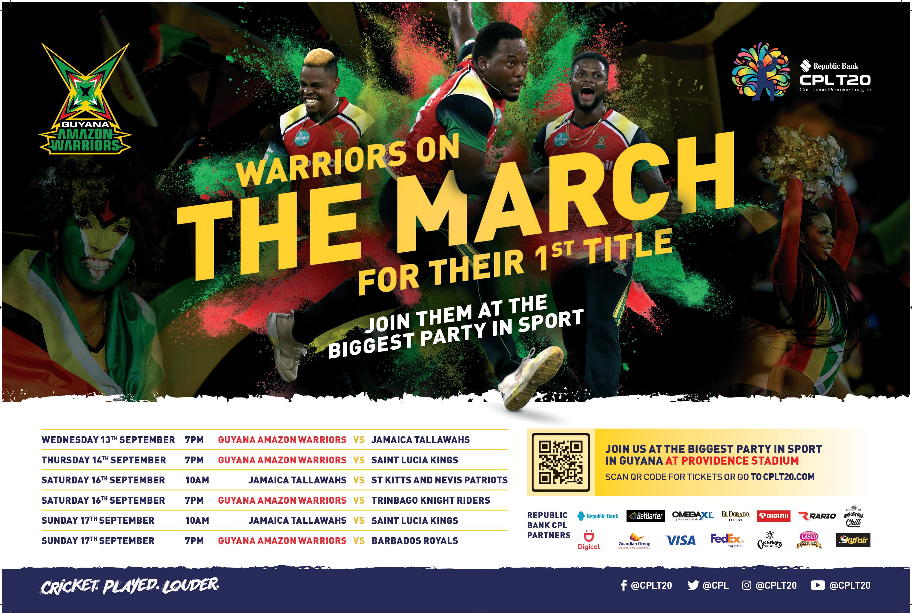 The Guyana Amazon Warriors (GAW) will be in action tonight in their first home game of the season at the National Stadium, Providence, from 19:00 hours.