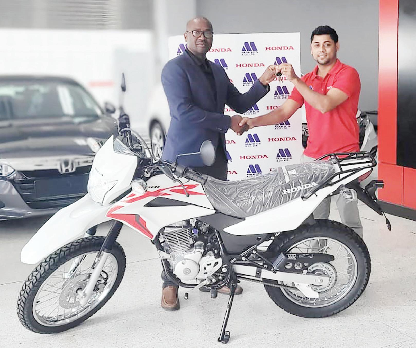 Yesterday, at its 186 Charlotte Street office, Marics presented head of the Guyana Football Federation (GFF); Wayne Forde, a brand new Honda motorcycle that will be the prize for the tournament’s highest goalscorer.