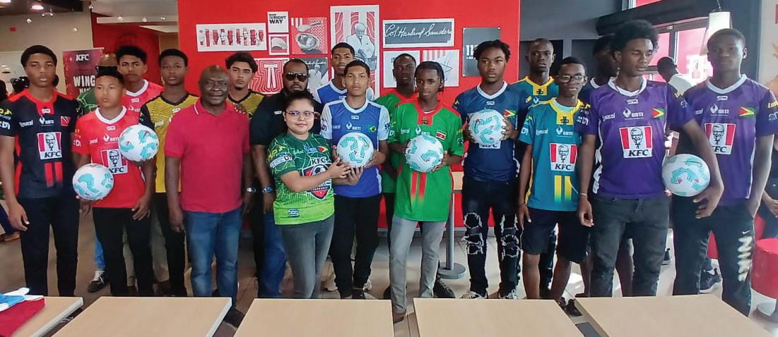 ALL the teams that will be competing in the KFC Goodwill International Football Tournament from South America and the rest of the Caribbean arrived in Guyana yesterday and converged at the KFC’s Vlissengen Road location for the pre-tournament team briefing and kitdistribution exercise.