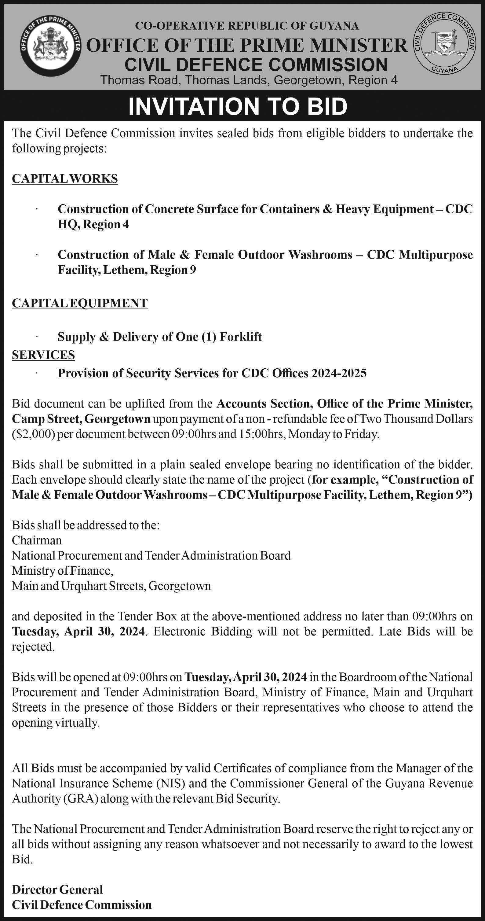 Printed and Published by Guyana National Newspapers Limited, Lama Avenue, Bel Air Park, Georgetown. Telephone 226-3243-9 (General); Editorial: 227-5204, 227-5216. Fax:227-5208 MONDAY, APRIL 15, 2024