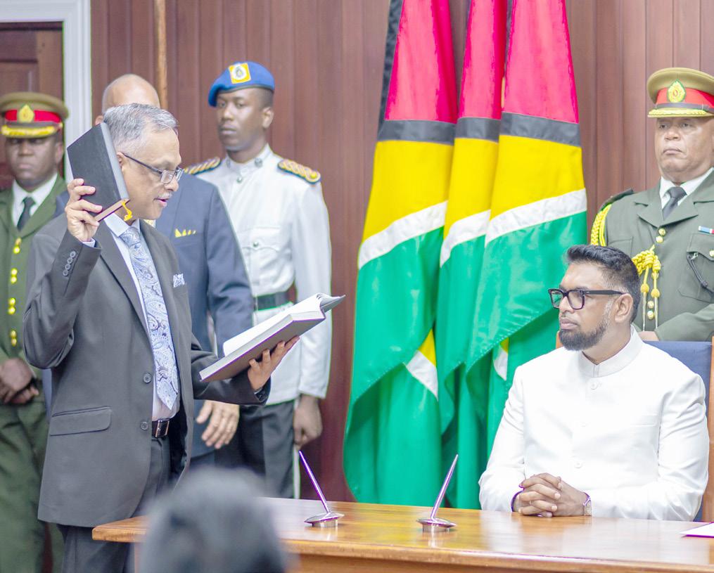 Justice Bulkan was officially sworn in at a simple but significant ceremony held at the Office of the President.