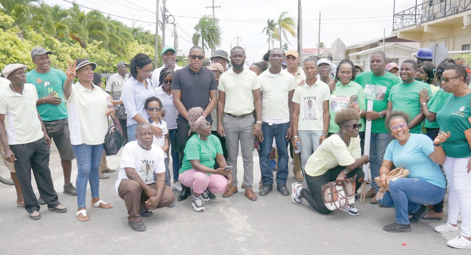 Leader of the Opposition, Aubrey Norton and a group of supporters on Monday (Leader of the Opposition photo)