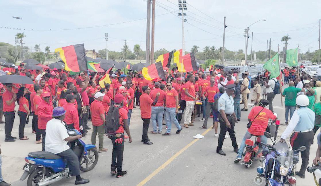 Supporters of the PPP/C (in red) and supporters of the APNU (in green) (Adrian Narine photos)