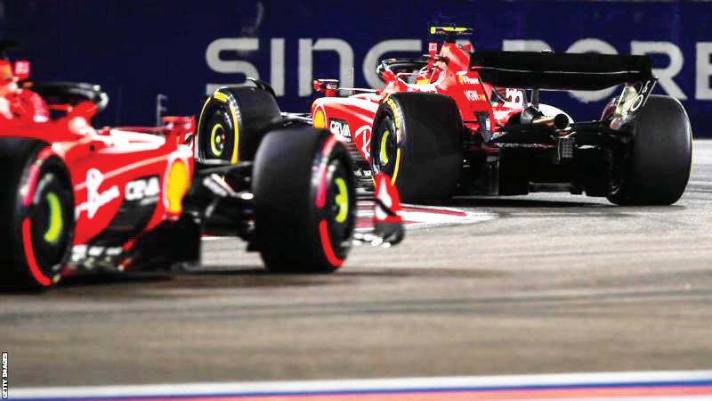 Sainz controlled the pace, as is typical for a leader in Singapore, while Leclerc was asked by Ferrari to back up the rest of the field and give his team-mate a five-second lead.