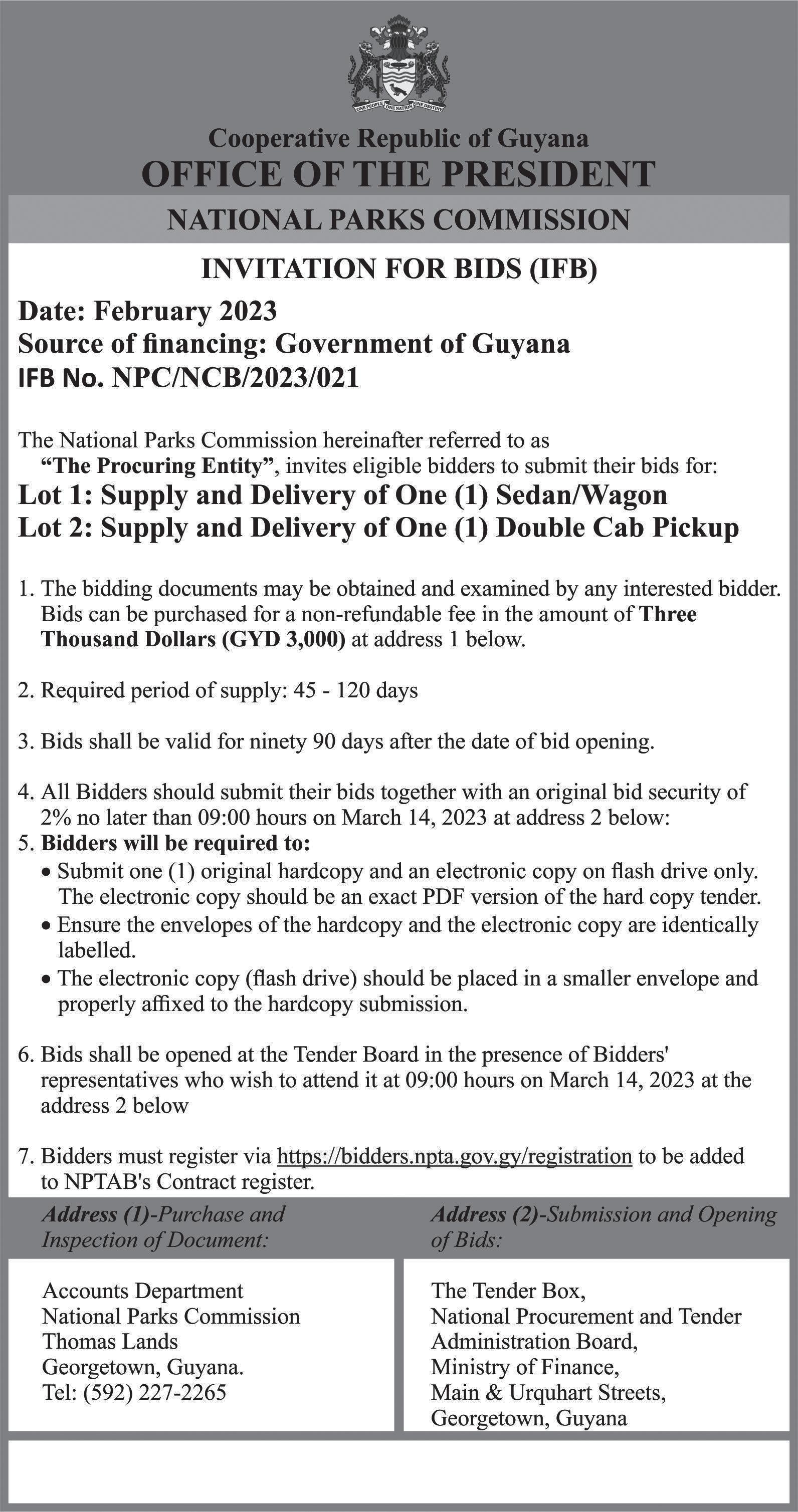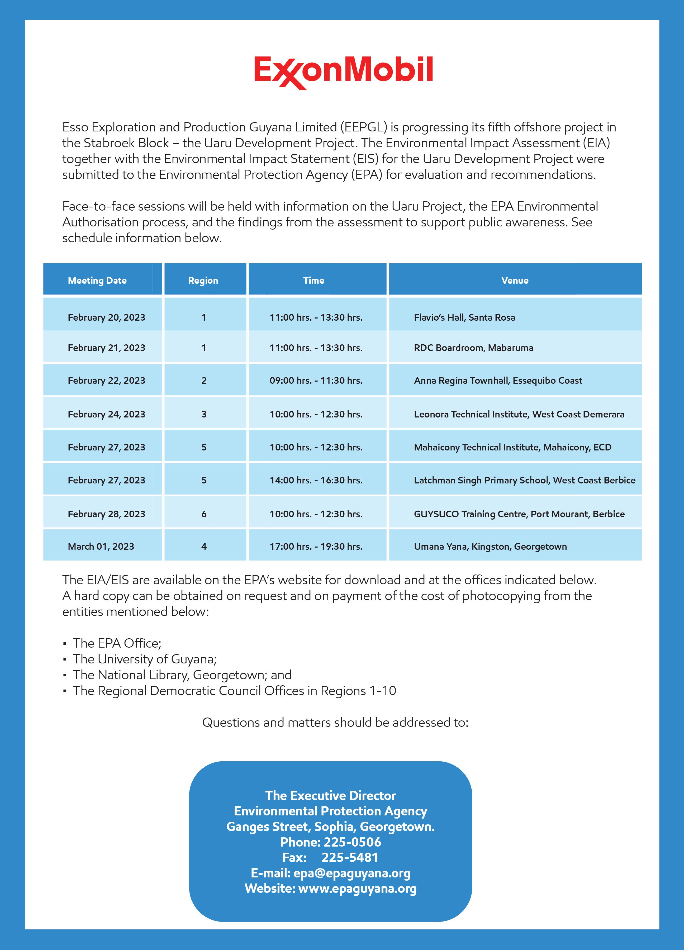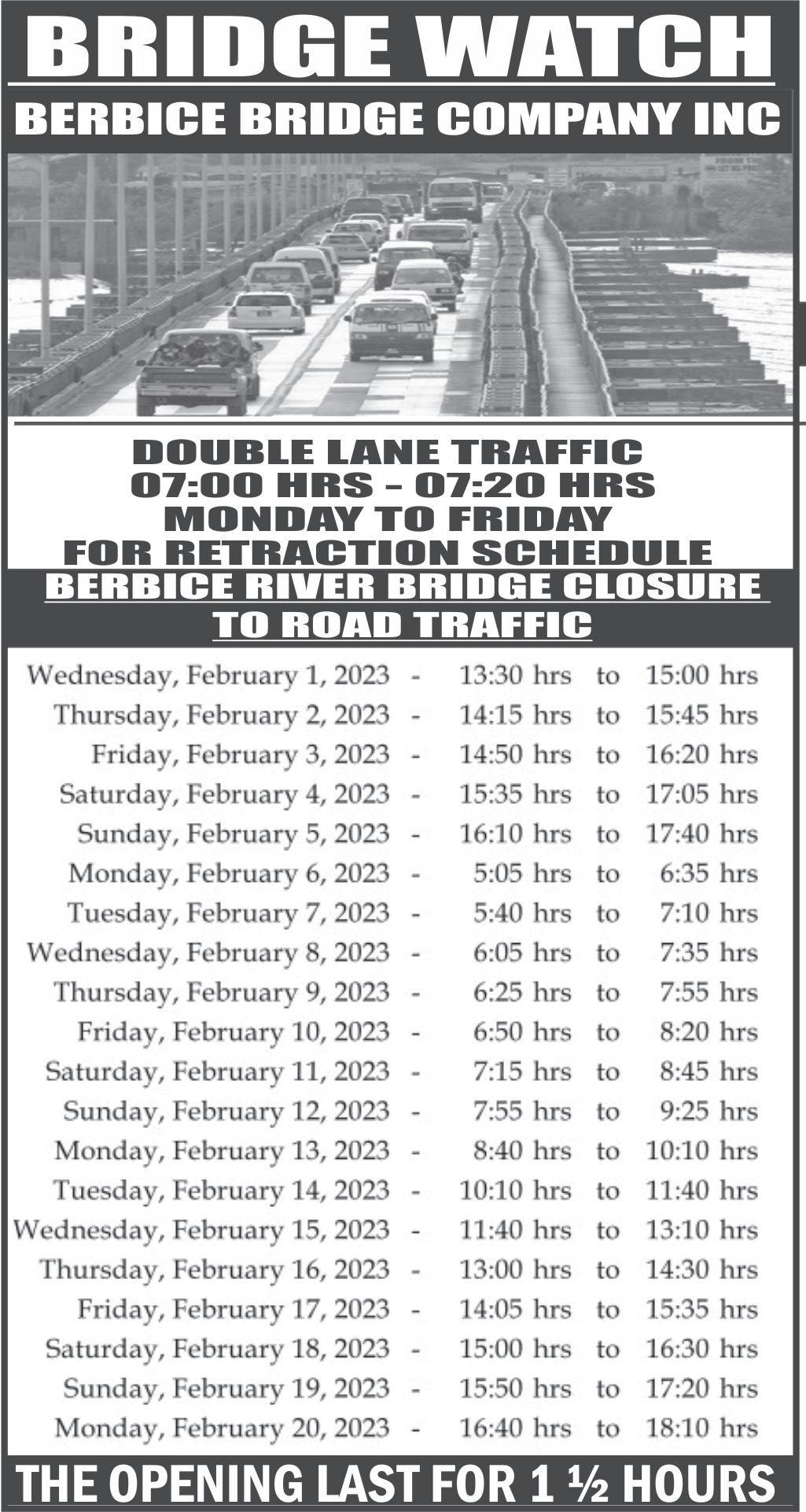 Printed and Published by Guyana National Newspapers Limited, Lama Avenue, Bel Air Park, Georgetown. Telephone 226-3243-9 (General); Editorial: 227-5204, 227-5216. Fax:227-5208 MONDAY, FEBRUARY 20, 2023