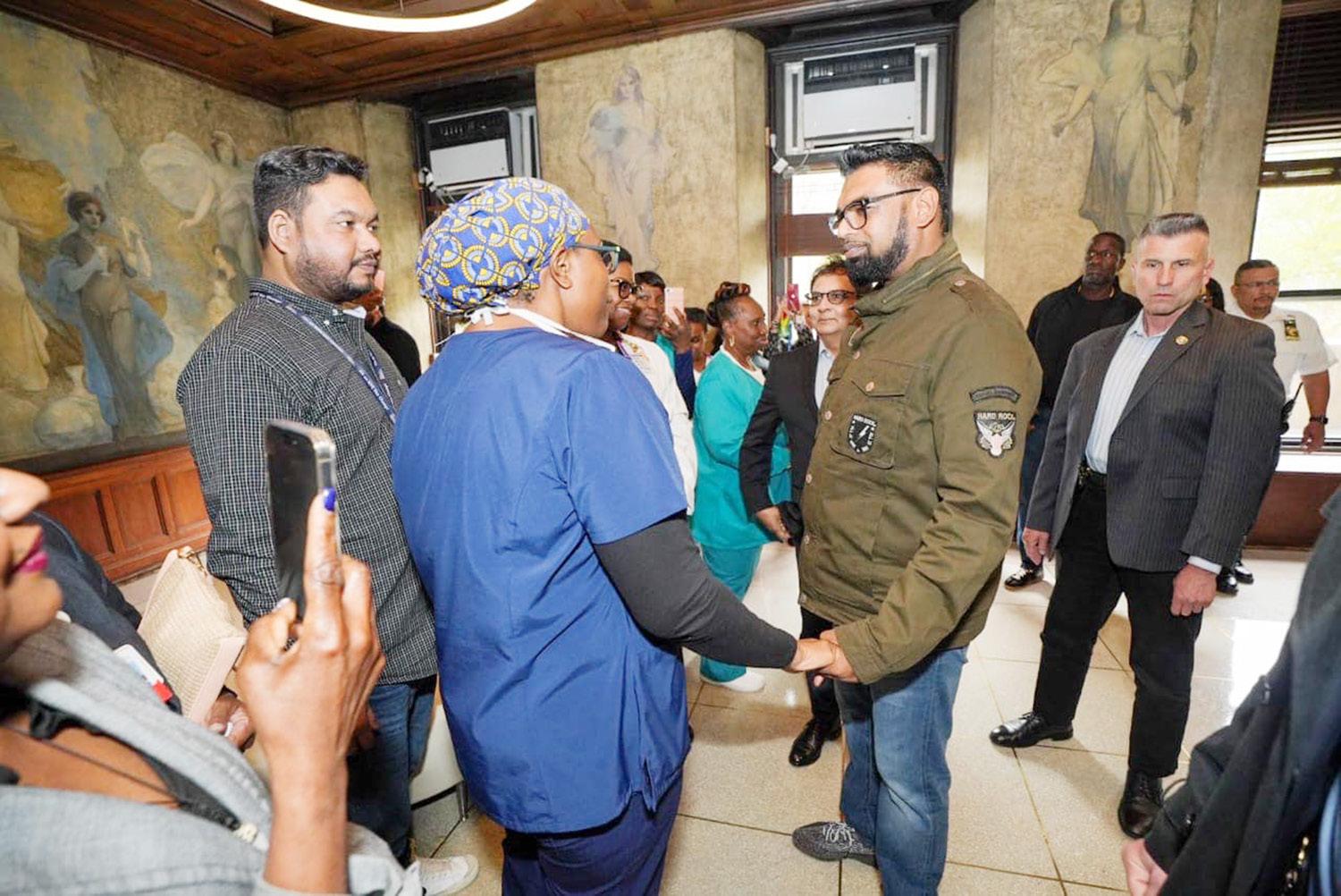 Guyana’s president received a warm welcome when he visited Kings County Hospital and other parts of Brooklyn, New York, on Friday