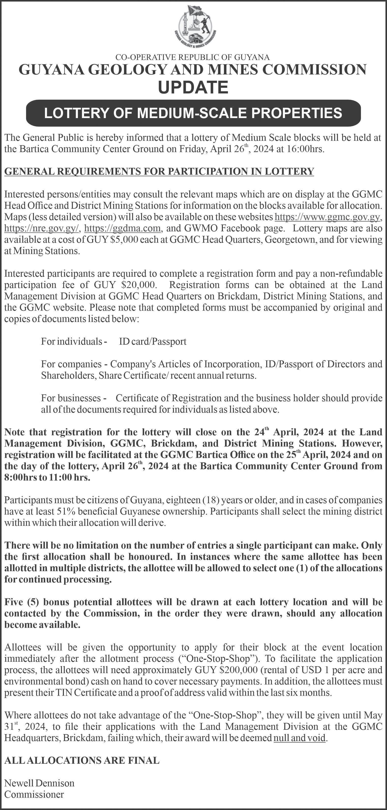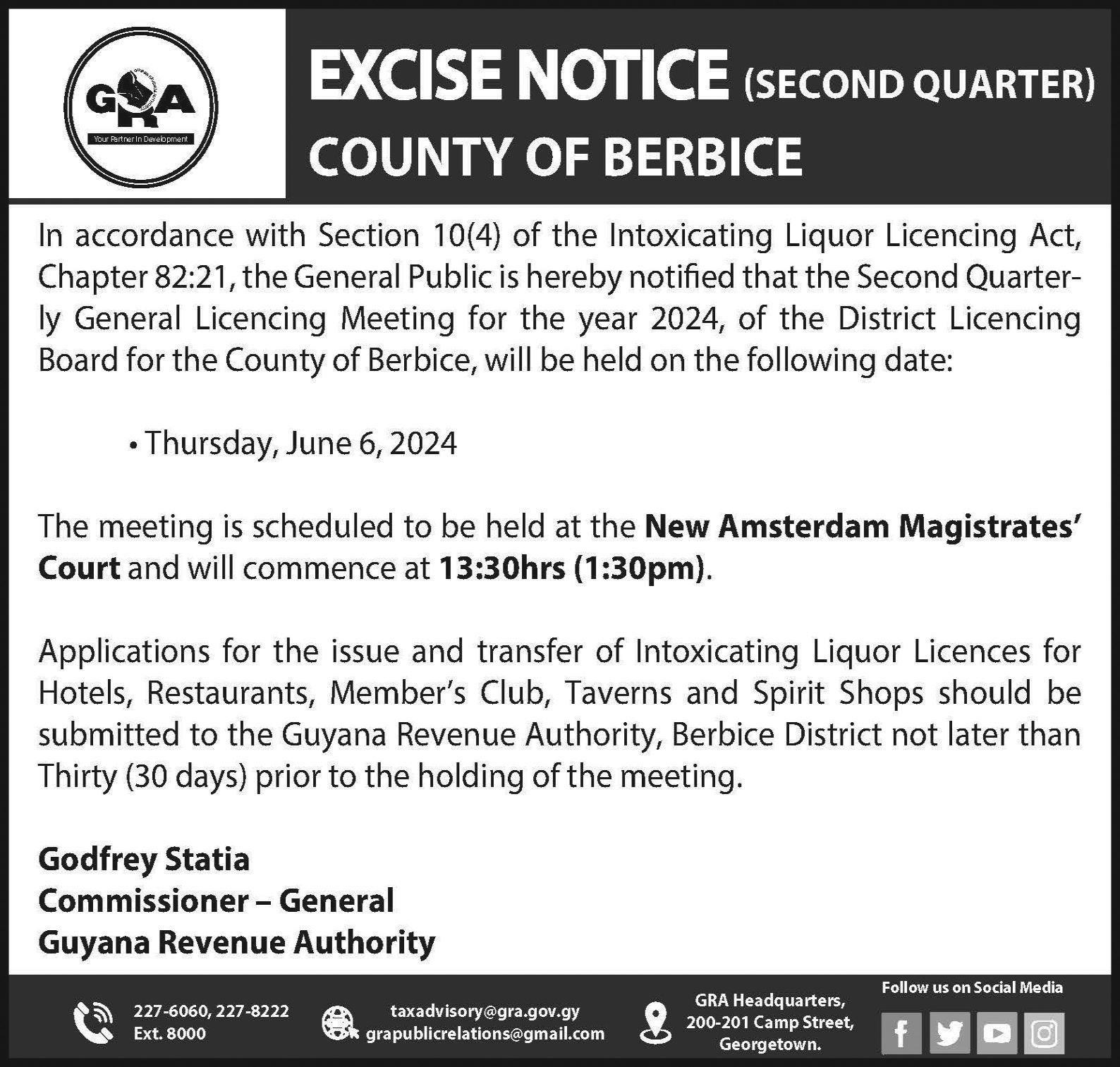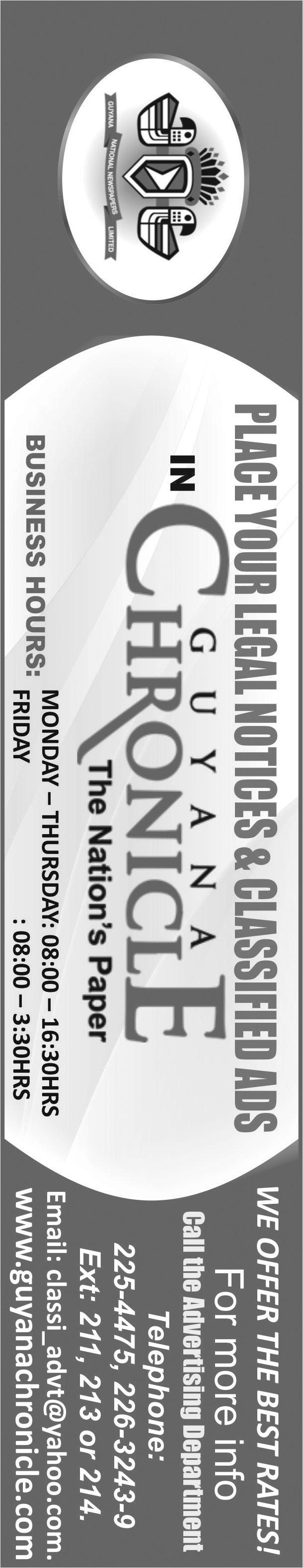 Printed and Published by Guyana National Newspapers Limited, Lama Avenue, Bel Air Park, Georgetown. Telephone 226-3243-9 (General); Editorial: 227-5204, 227-5216. Fax:227-5208 | SATURDAY, APRIL 20, 2024