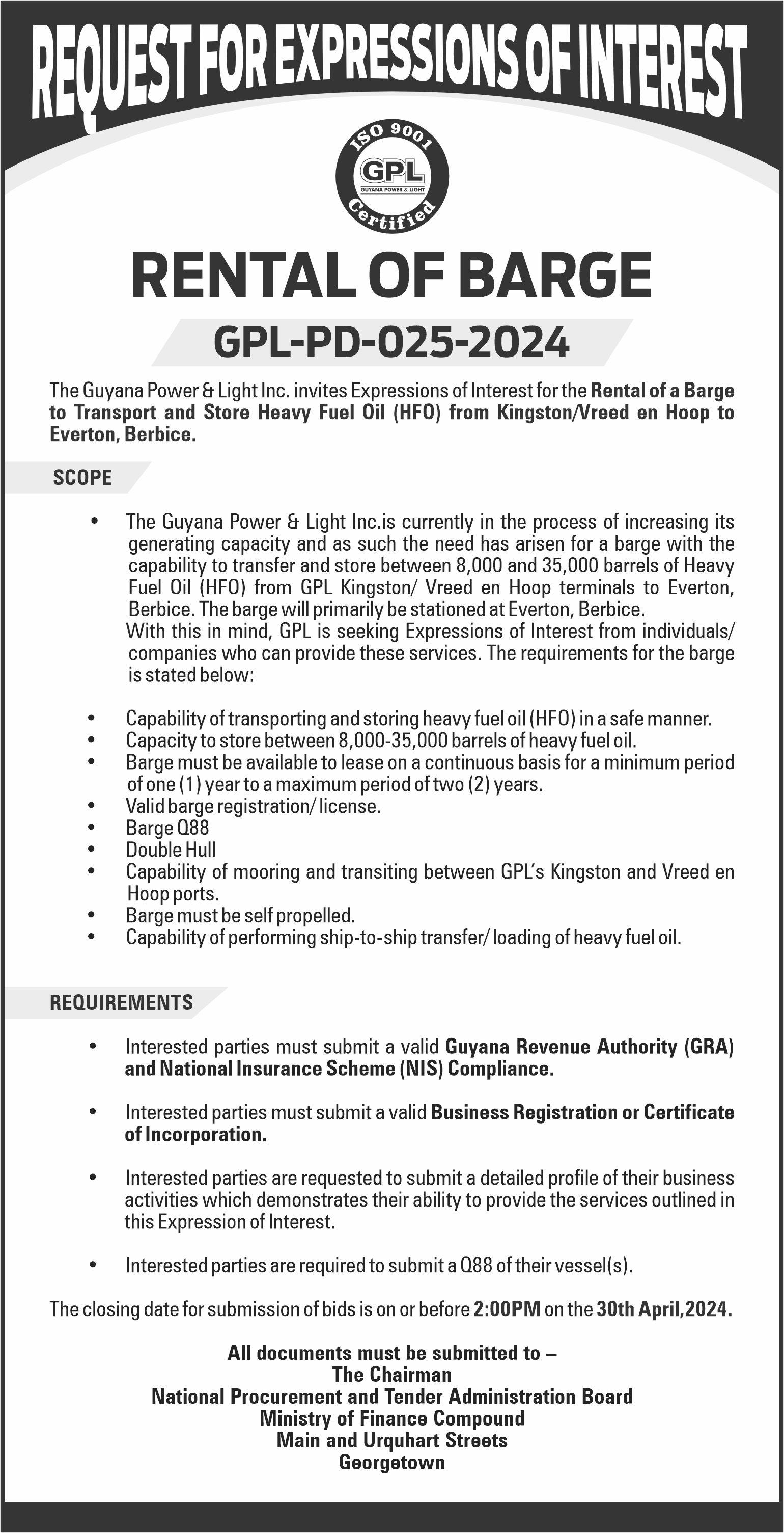 According to the power company, the power ship is expected to operate at 96 per cent availability. The GPL said that it is not required, under the contract, to pay a demobilisation fee.