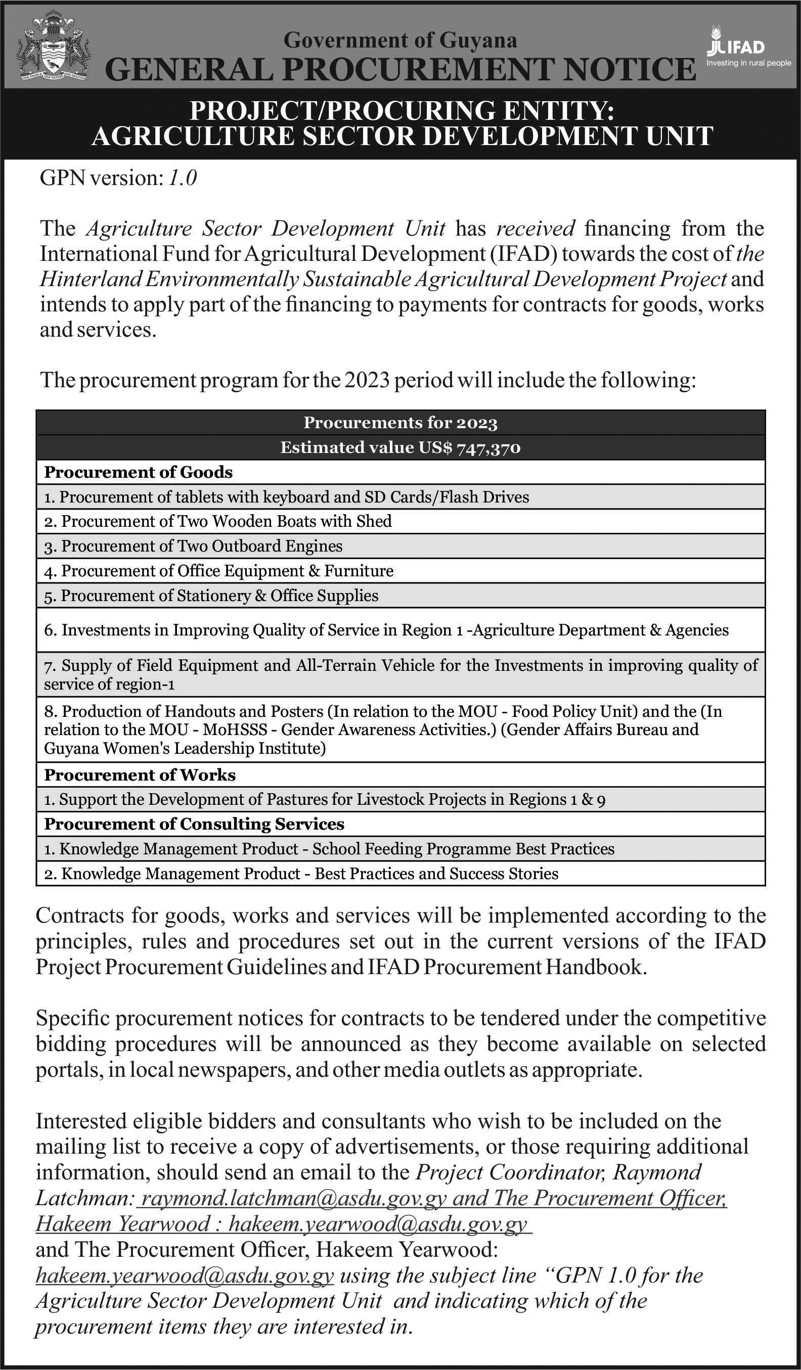 There will be upgrades to drainage and irrigation systems across the country, as well as new pump stations which will be constructed at Meten-Meer-Zorg, Jimbo Grove, Belle Vue and Letter Kenny.