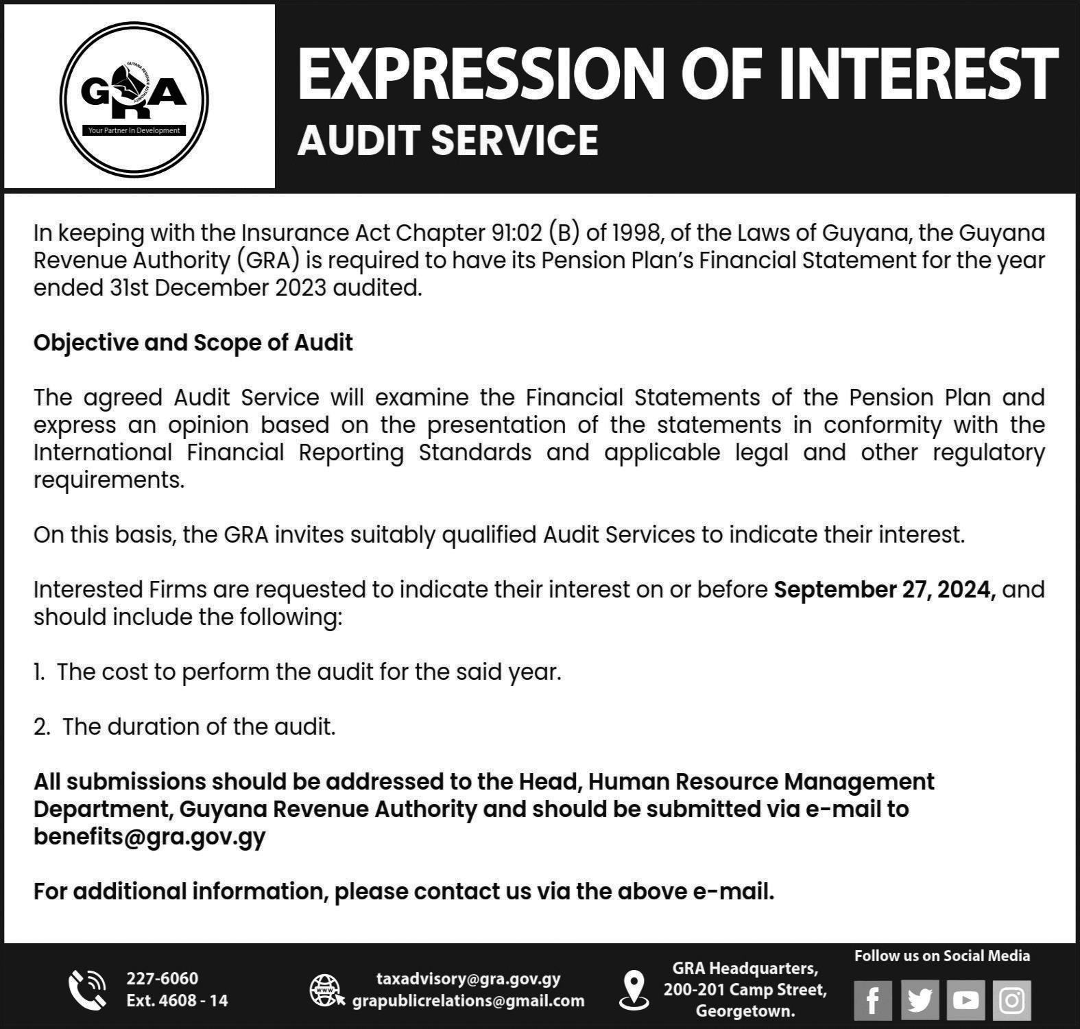 information will be recorded by the Guyana Revenue Authority (GRA).