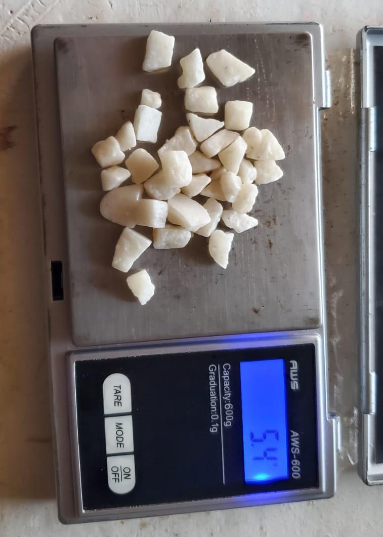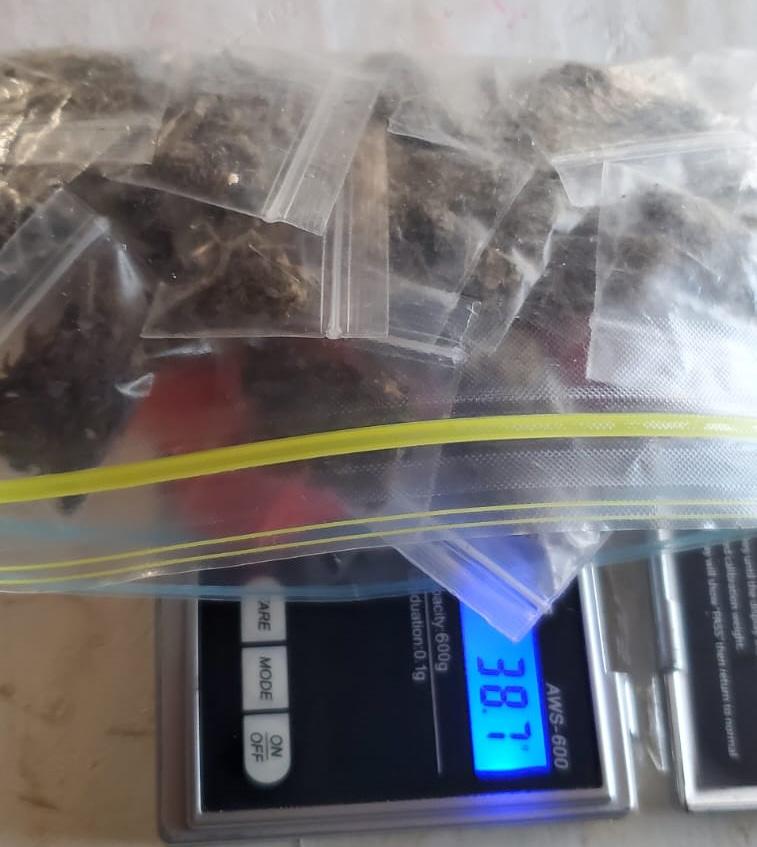 The suspected narcotics was weighed, and amounted to 5.4 grams of cocaine and 38.7 grams of marijuana.