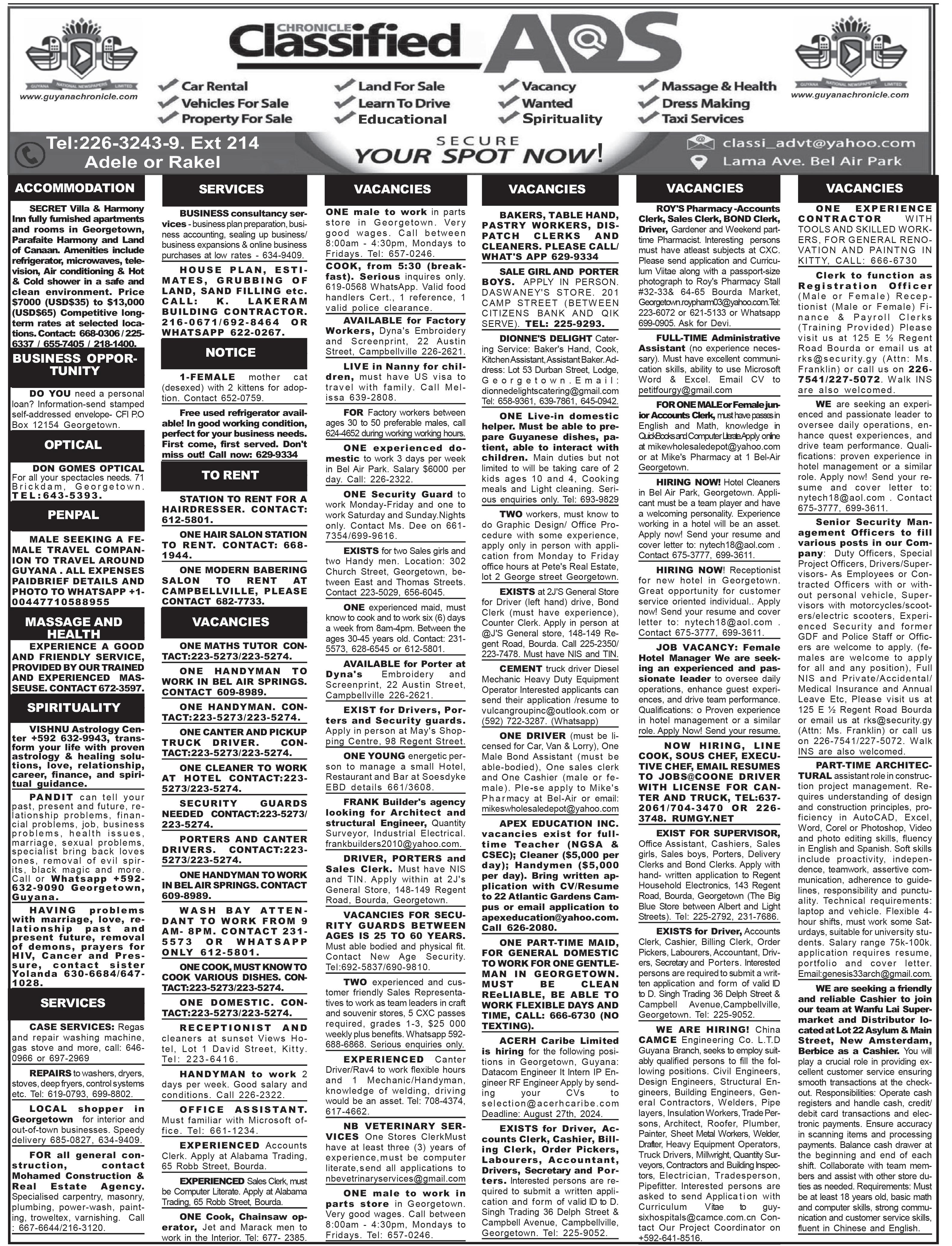 (Wednesday, October 23, 2024) CUMMINGS ELECTRICAL COMPANY LTD, 83 Garnett Street, Campbellville, Georgetown (Tel: 225-6158) Answers to yesterday’s quiz: