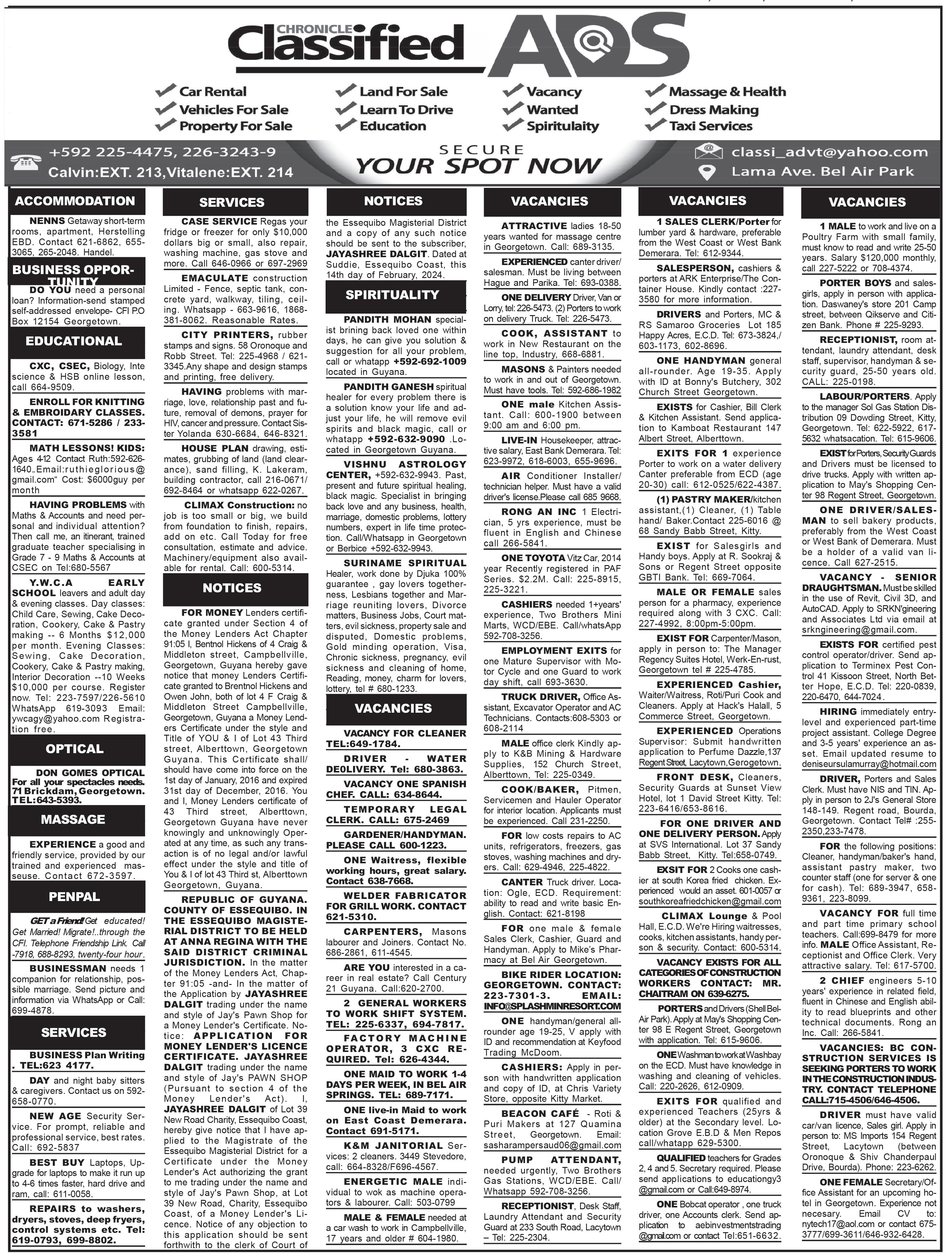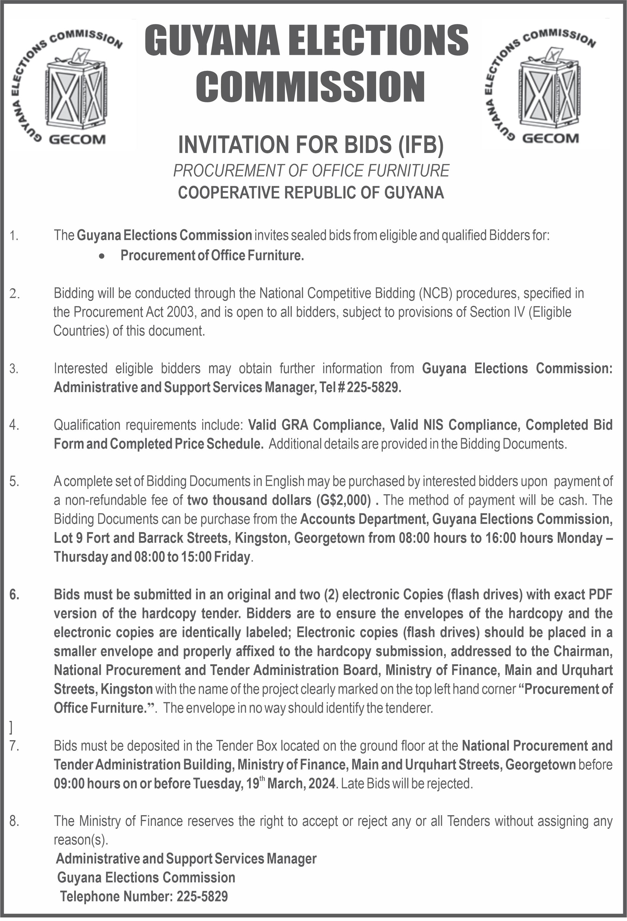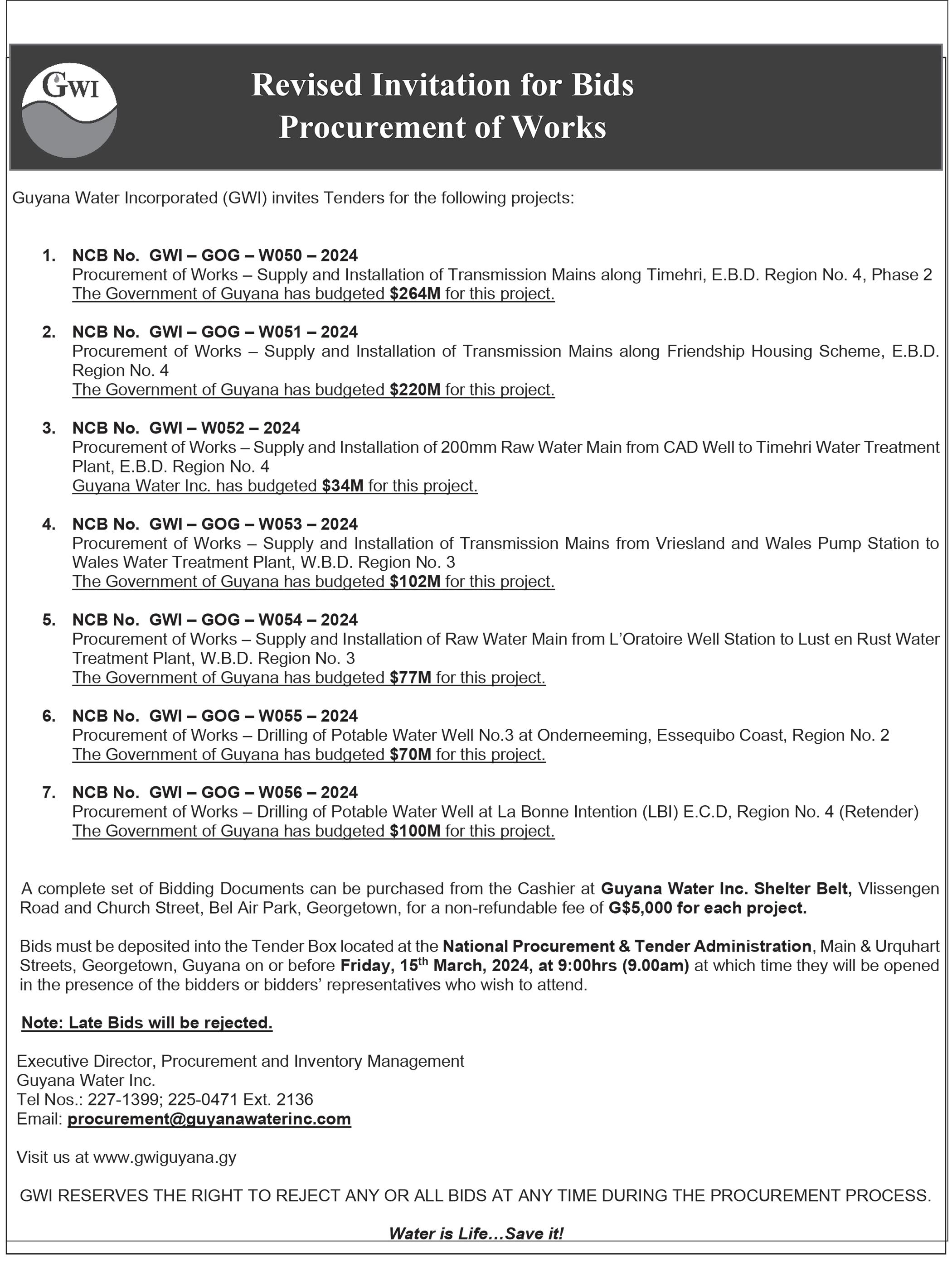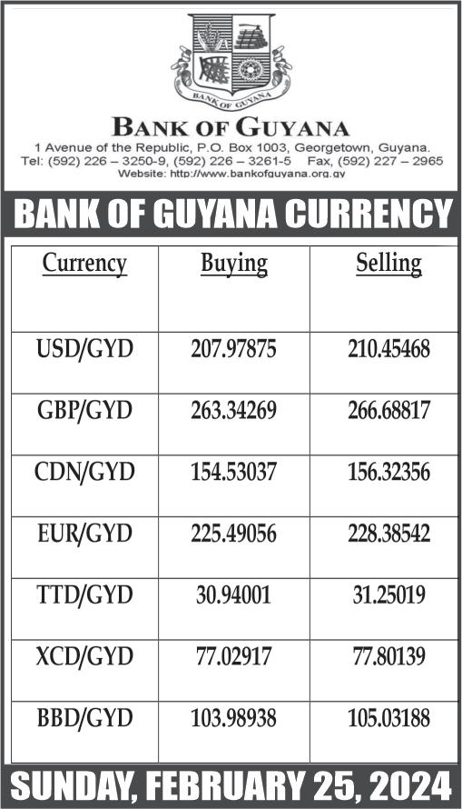 28 SUNDAY CHRONICLE, February 25, 2024 Printed and Published by Guyana National Newspapers Limited, Lama Avenue, Bel Air Park, Georgetown. Telephone 226-3243-9 (General); Editorial: 227-5204, 227-5216. Fax:227-5208 | SUNDAY, FEBRUARY 25, 2024 SEE PAGE 25