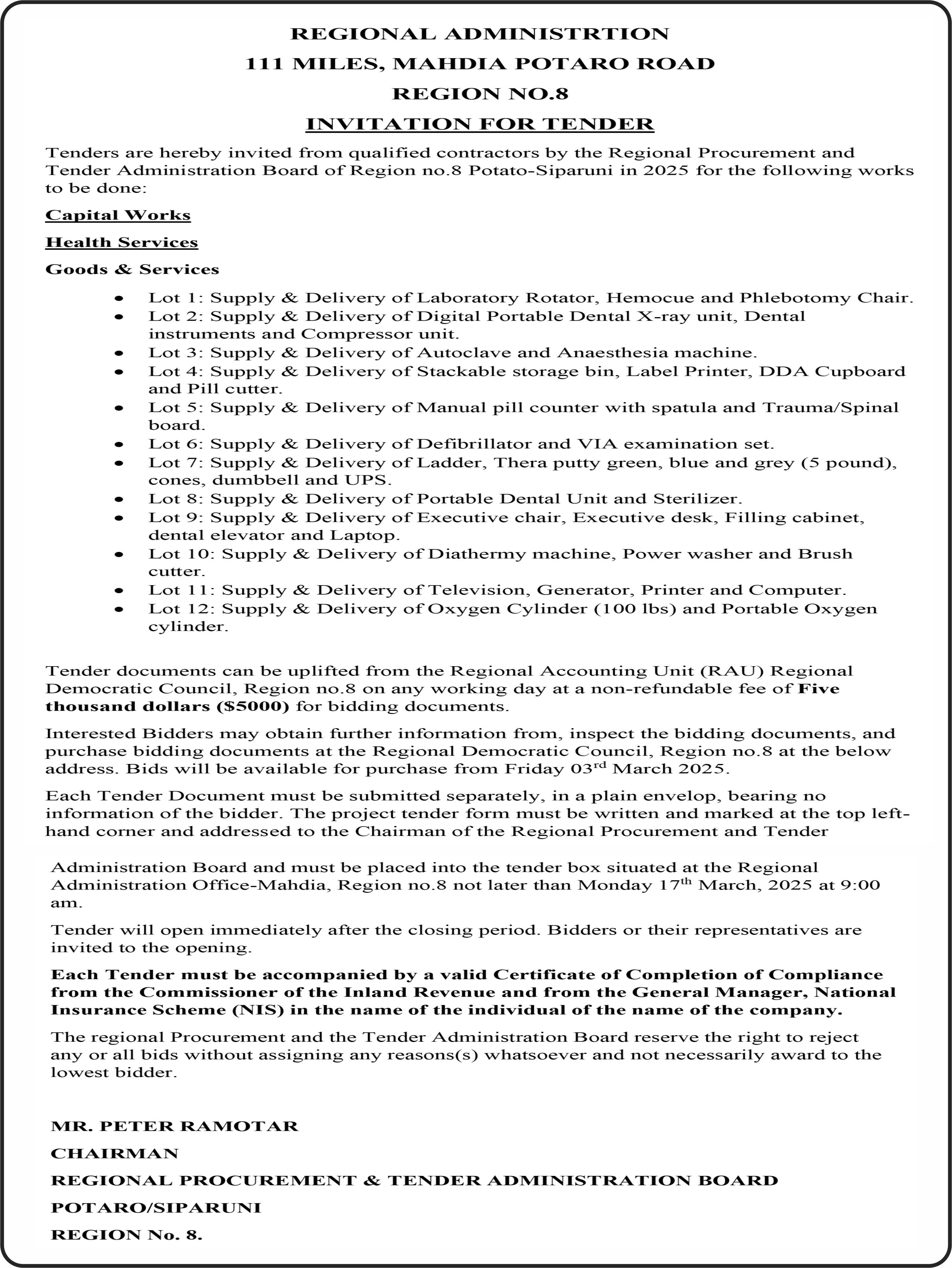 “Submissions should be addressed to: The Chief Executive Officer, Guyana Energy Agency (GEA), 295 Quamina Street, South Cummingsburg, Georgetown and submitted no later than 9:00 hrs on Friday March 14, 2025 via hard copy or email to gea @ gea gov gy,” the GEA said.